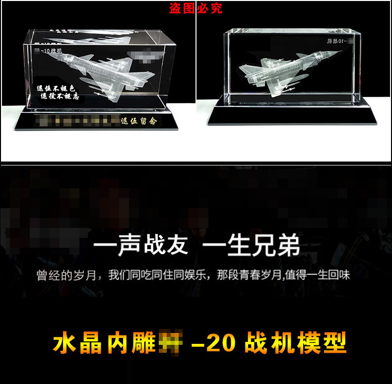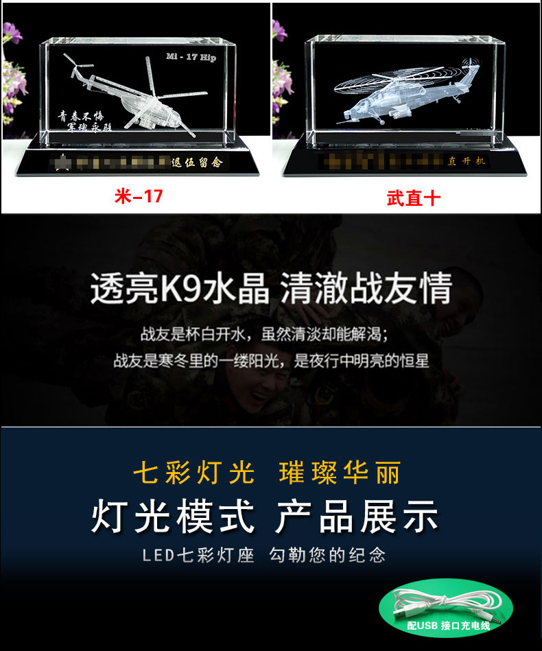 905 / 【水晶飞机模型】水晶内雕直升机飞机模型摆件老兵退伍军人纪念礼品定制送战友班长