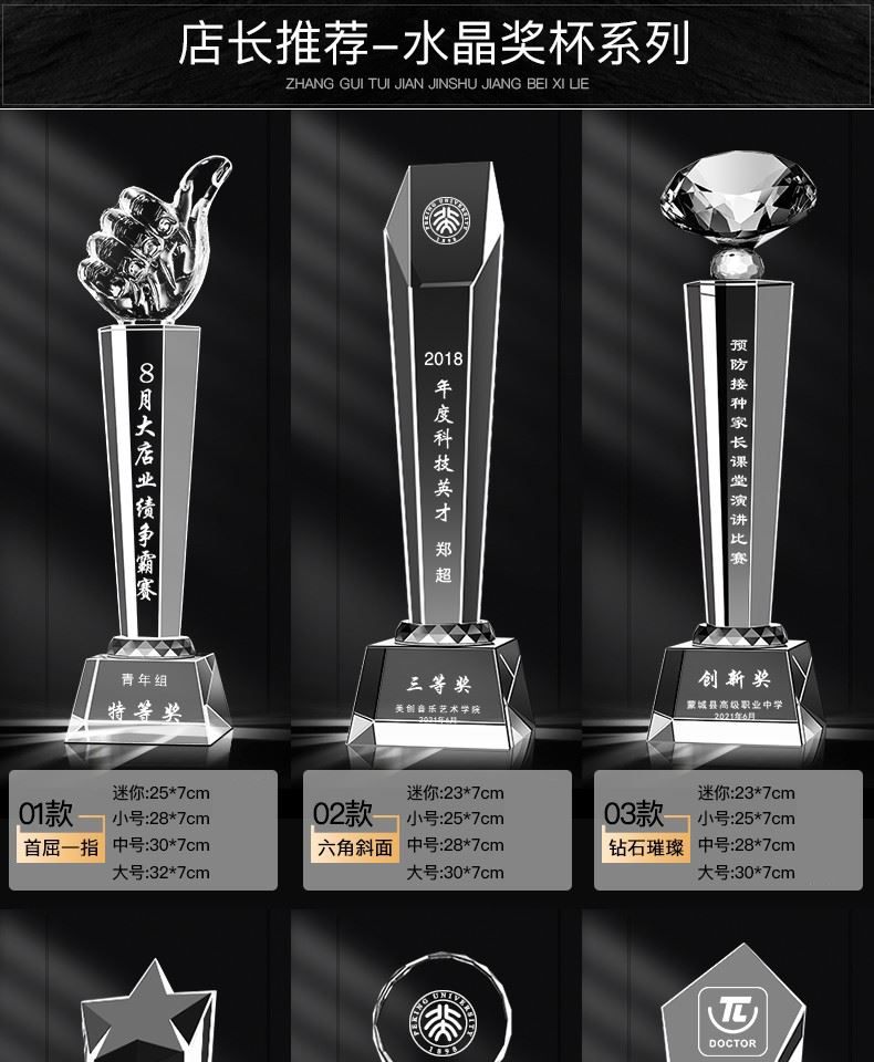 115 / 创意水晶奖杯定制订做学校公司年会活动颁奖优秀员工荣誉纪念
