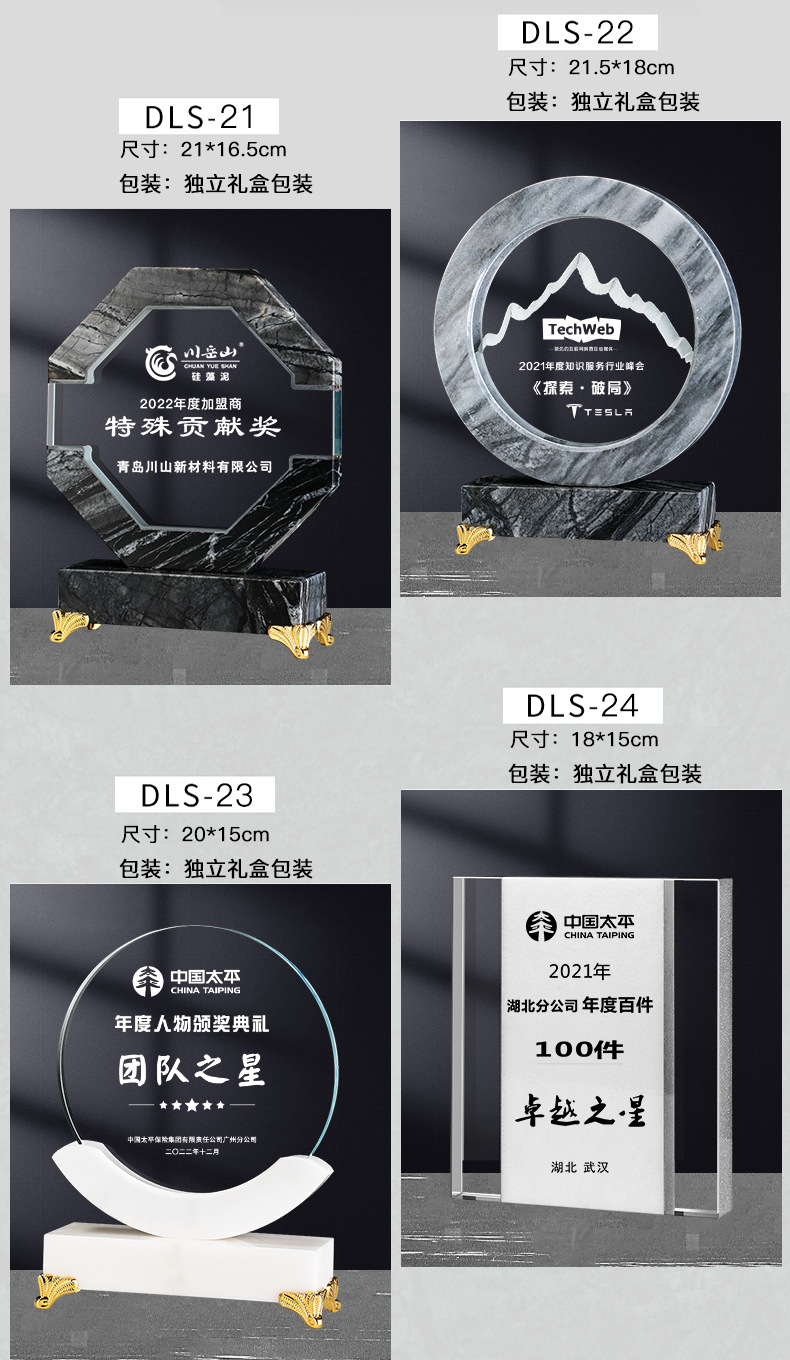 【大理石水晶奖牌