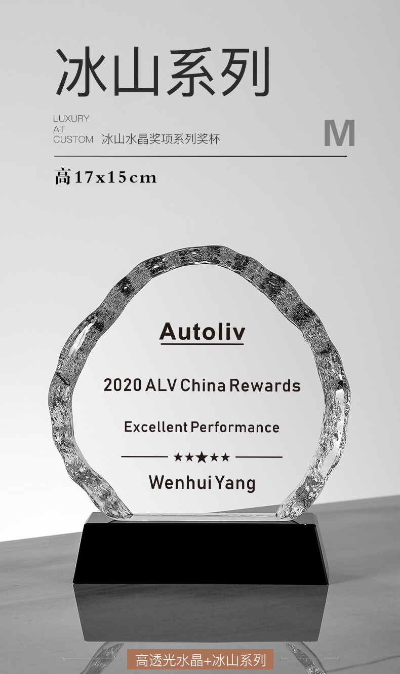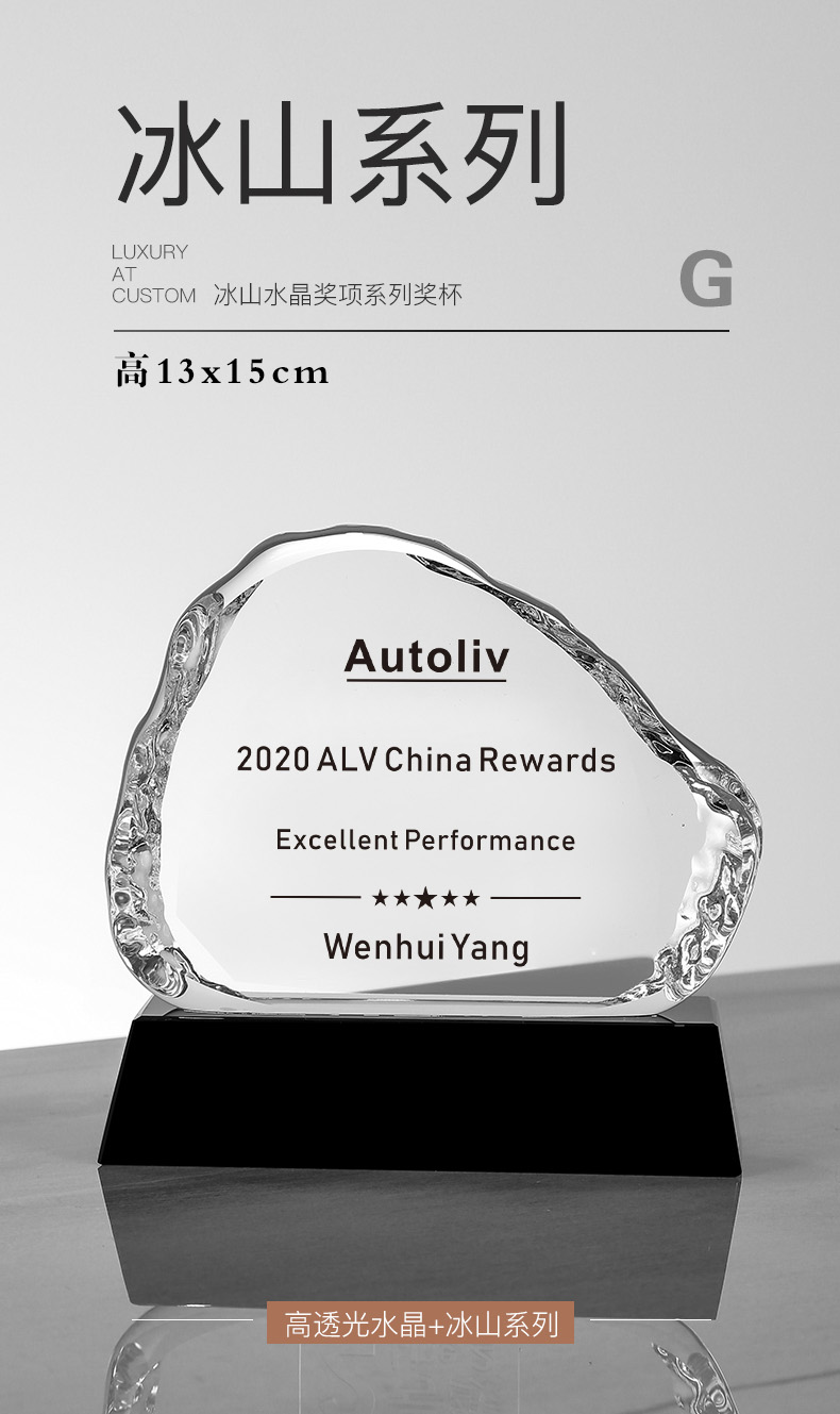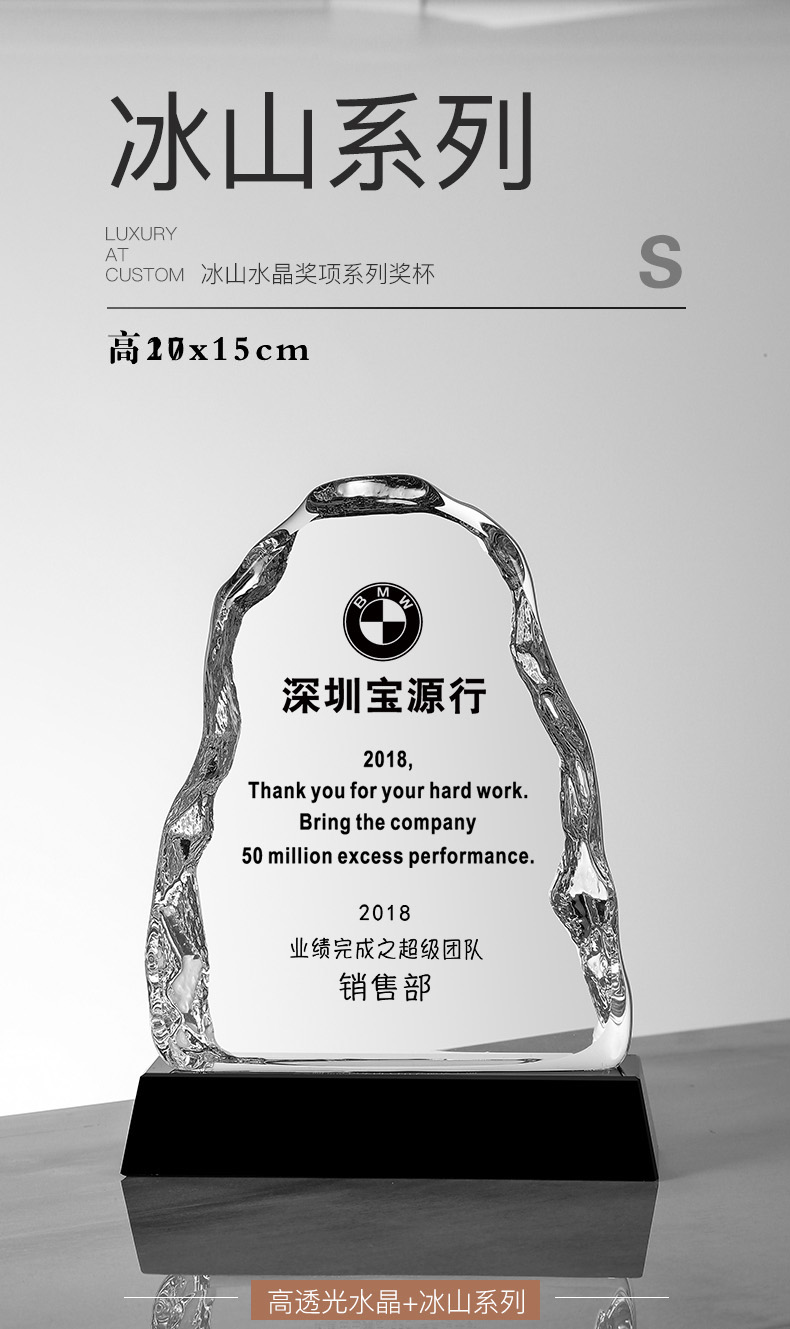 156 / 冰山奖杯定制创意水晶纪念品授权牌年会颁奖优秀员工定做奖牌刻字