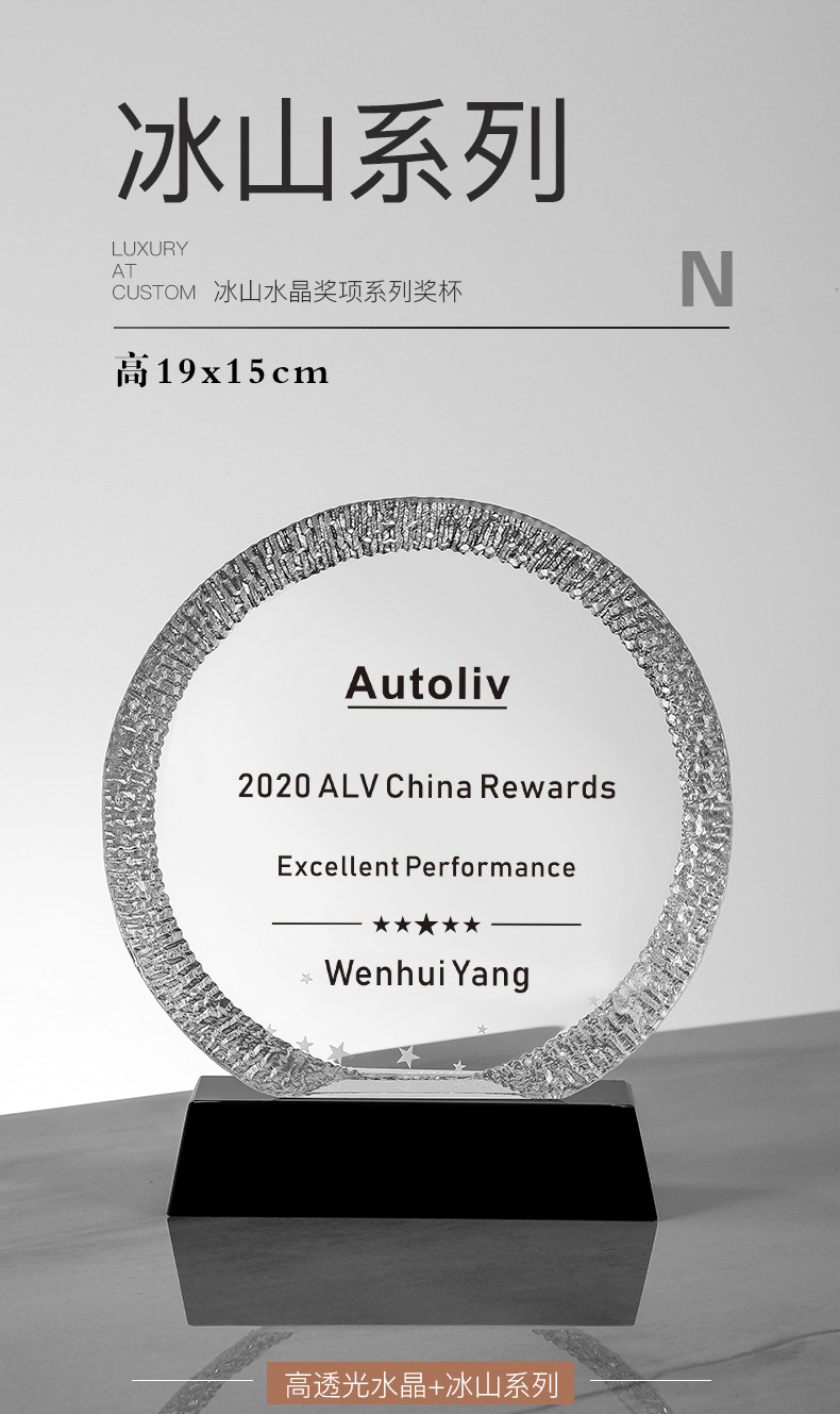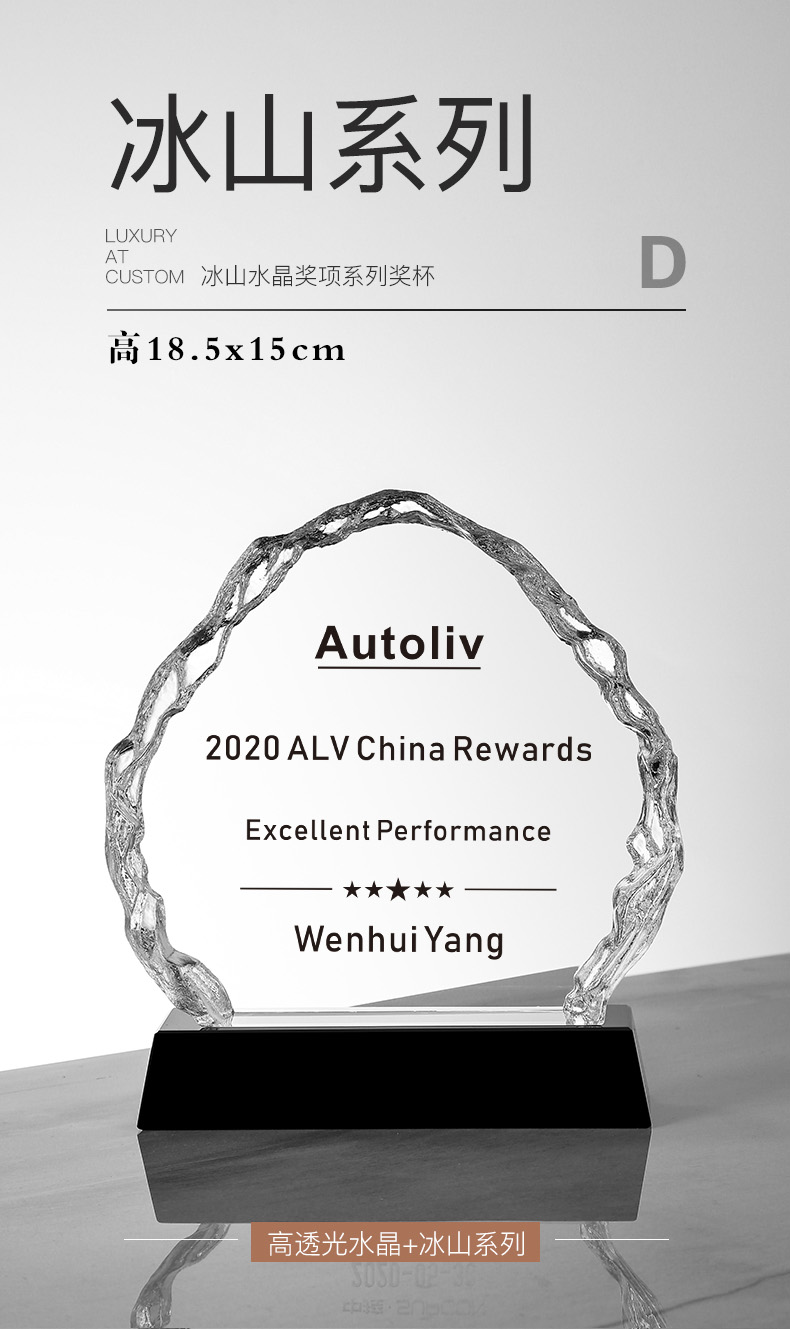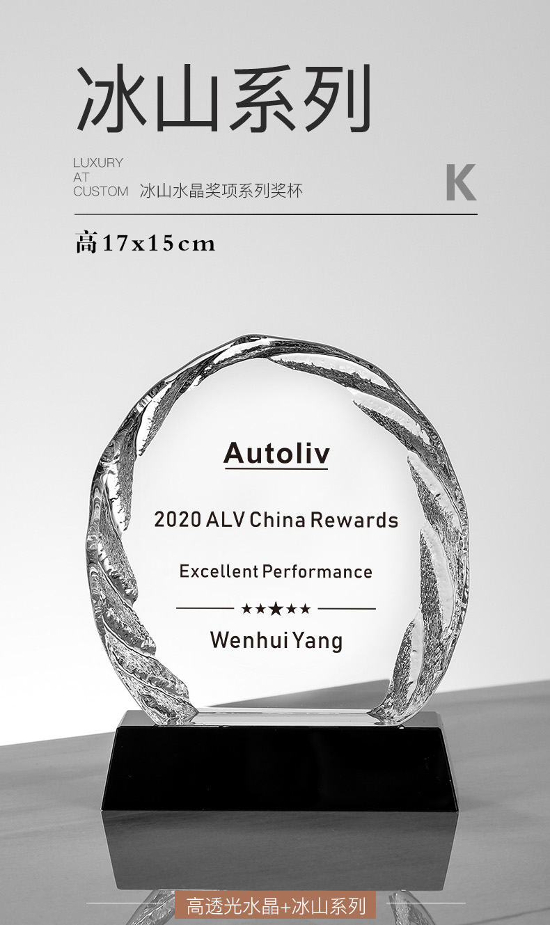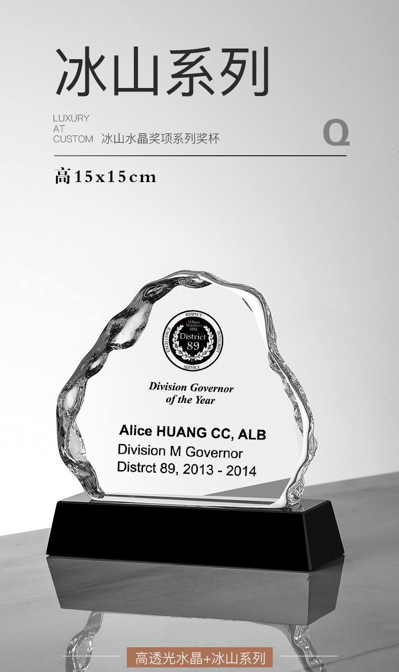 156 / 冰山奖杯定制创意水晶纪念品授权牌年会颁奖优秀员工定做奖牌刻字