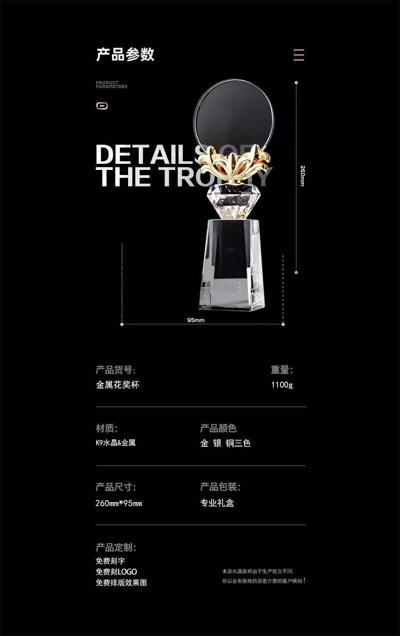 新款金属水晶奖杯