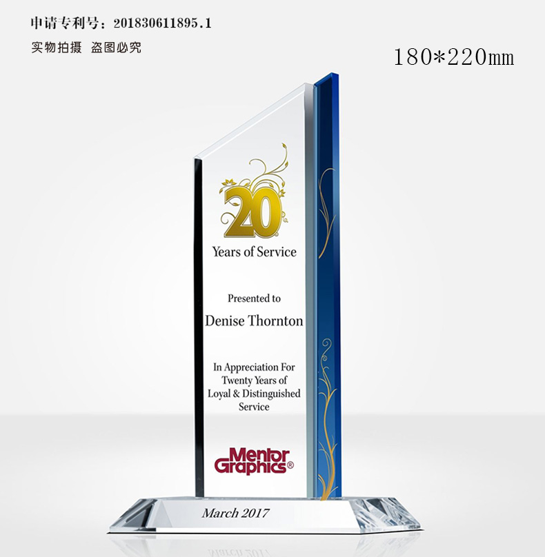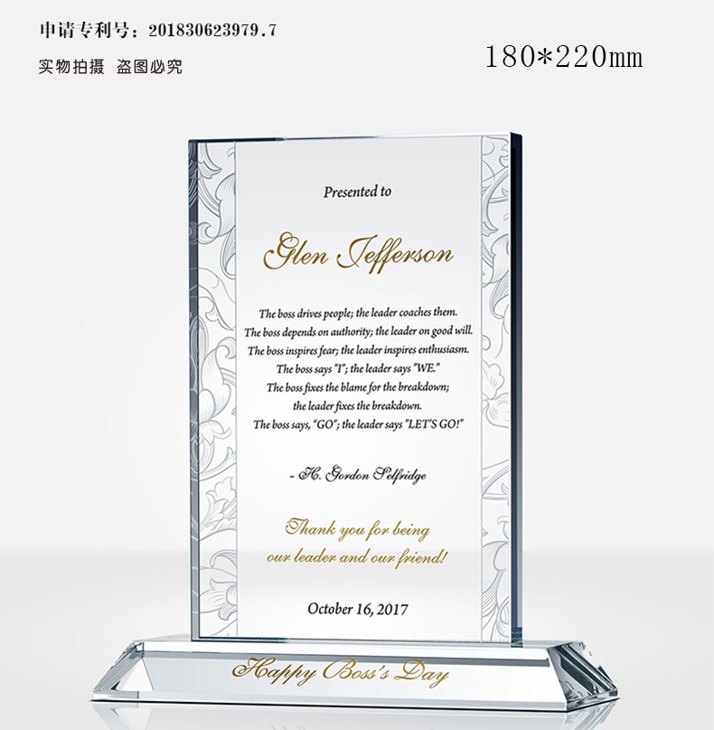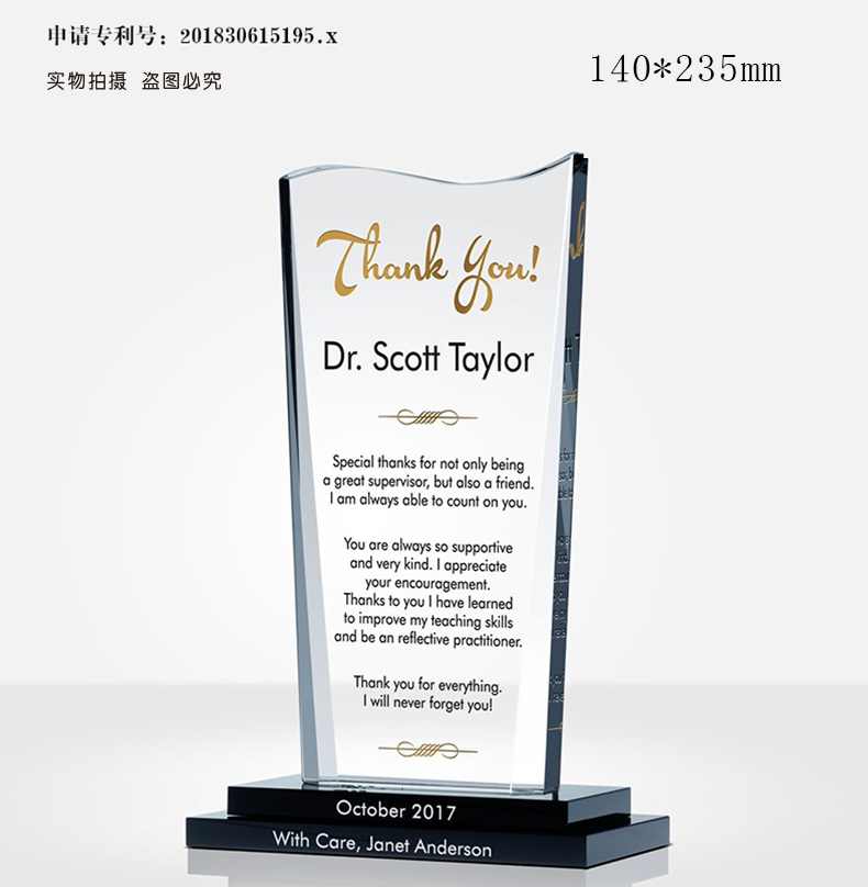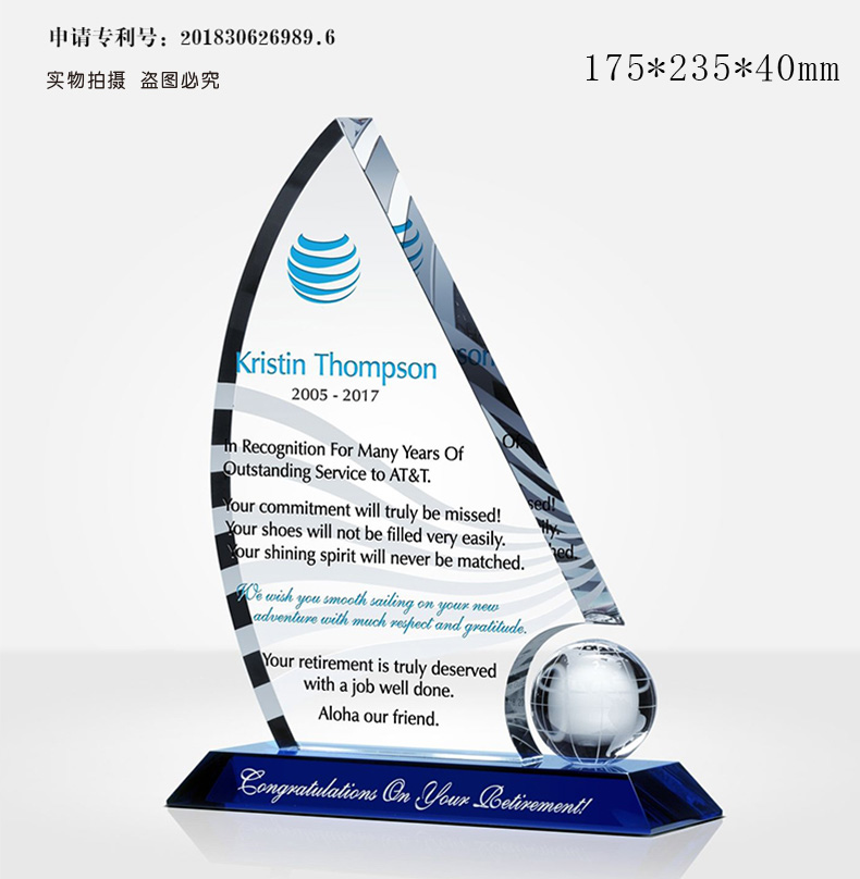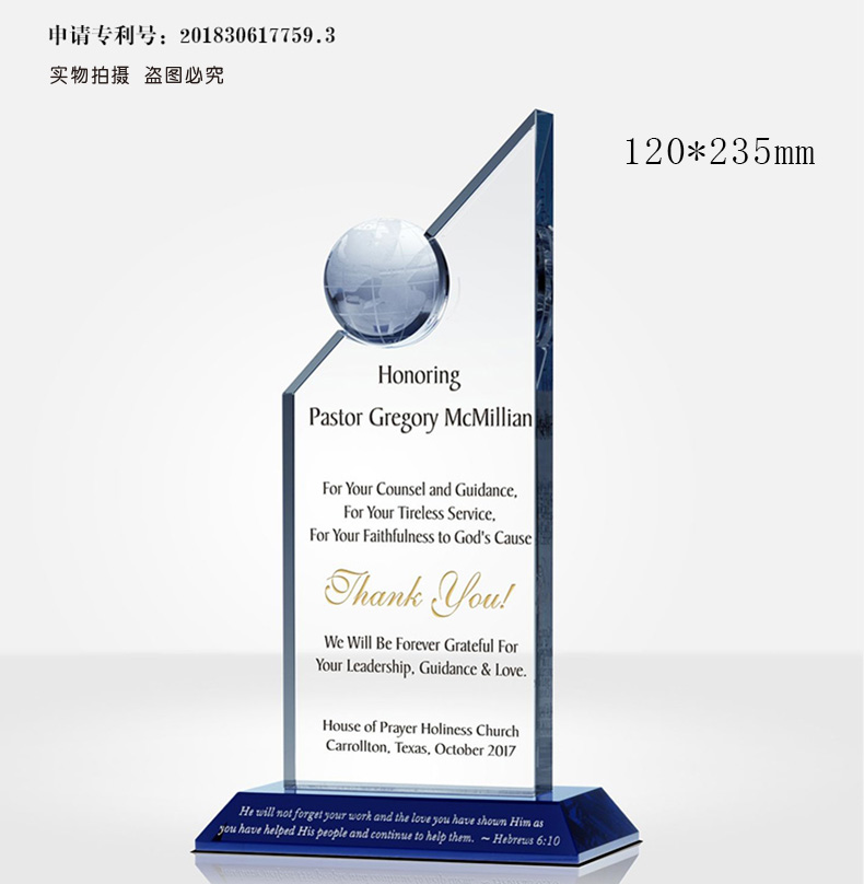 6 / 高端年会水晶奖杯定制定做刻字感谢牌授权牌退休奖座玻璃奖牌订制