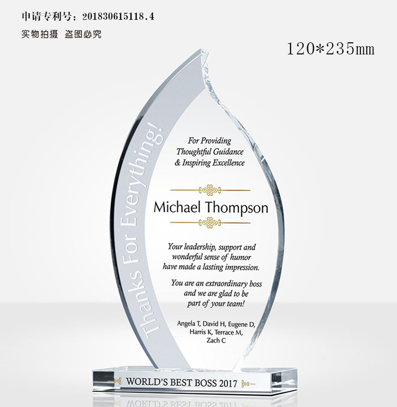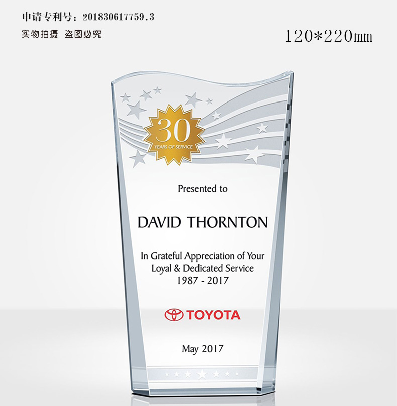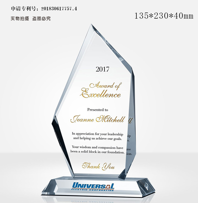 水晶奖杯定制彩印