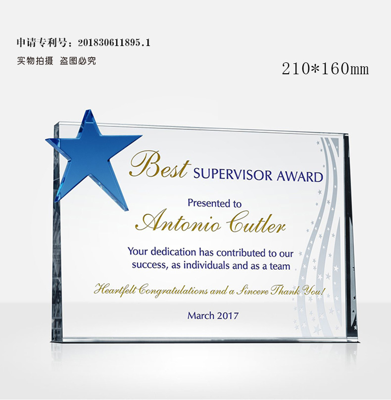 水晶挂牌奖牌