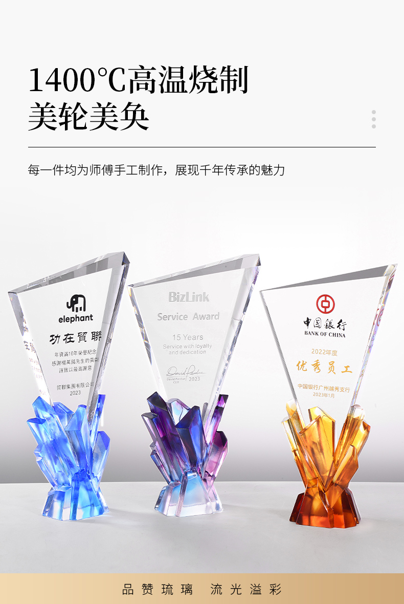 1031 / 新款古法琉璃水晶奖杯定制创意琉璃奖牌定做企业年会员工销冠颁奖