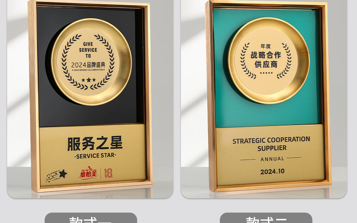 65 / 木质授权牌胡桃木奖牌定制定做加盟商创意五角星金属荣誉奖杯牌匾