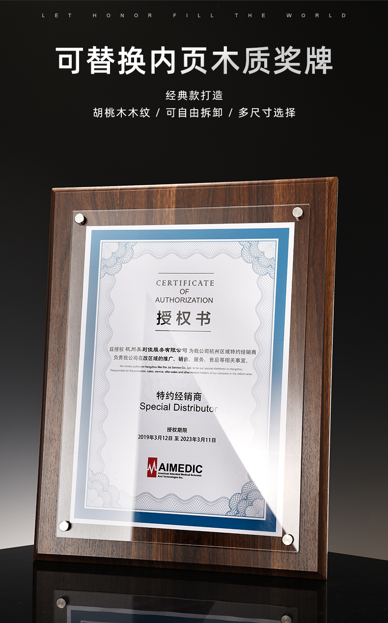 高端授权牌实木定