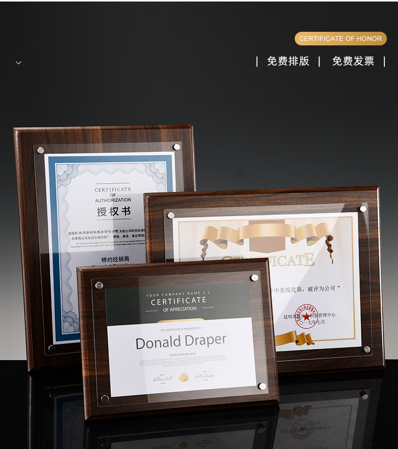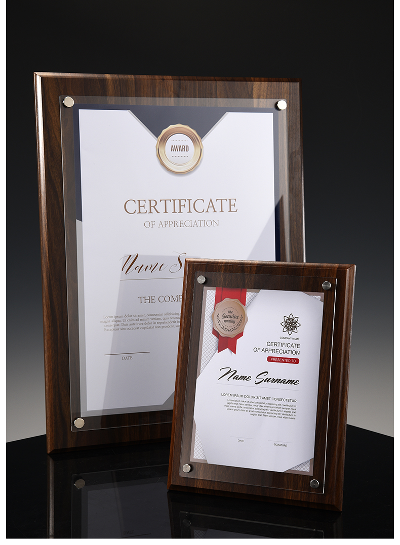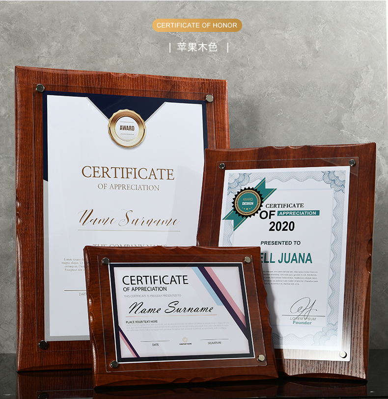 508 / 【木相框】荣誉证书相框摆台制作打印捐赠毕业结业证书定制水晶企业培训资质定做