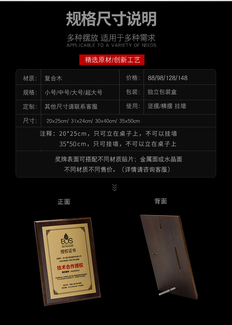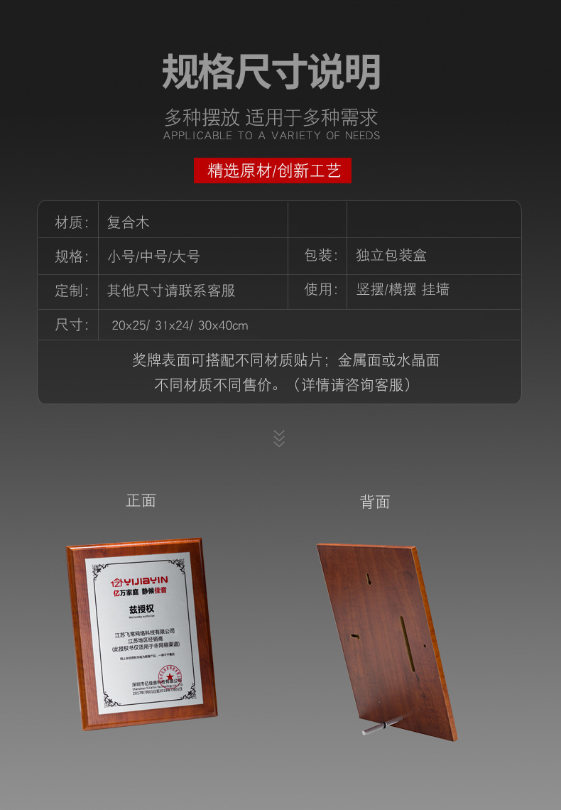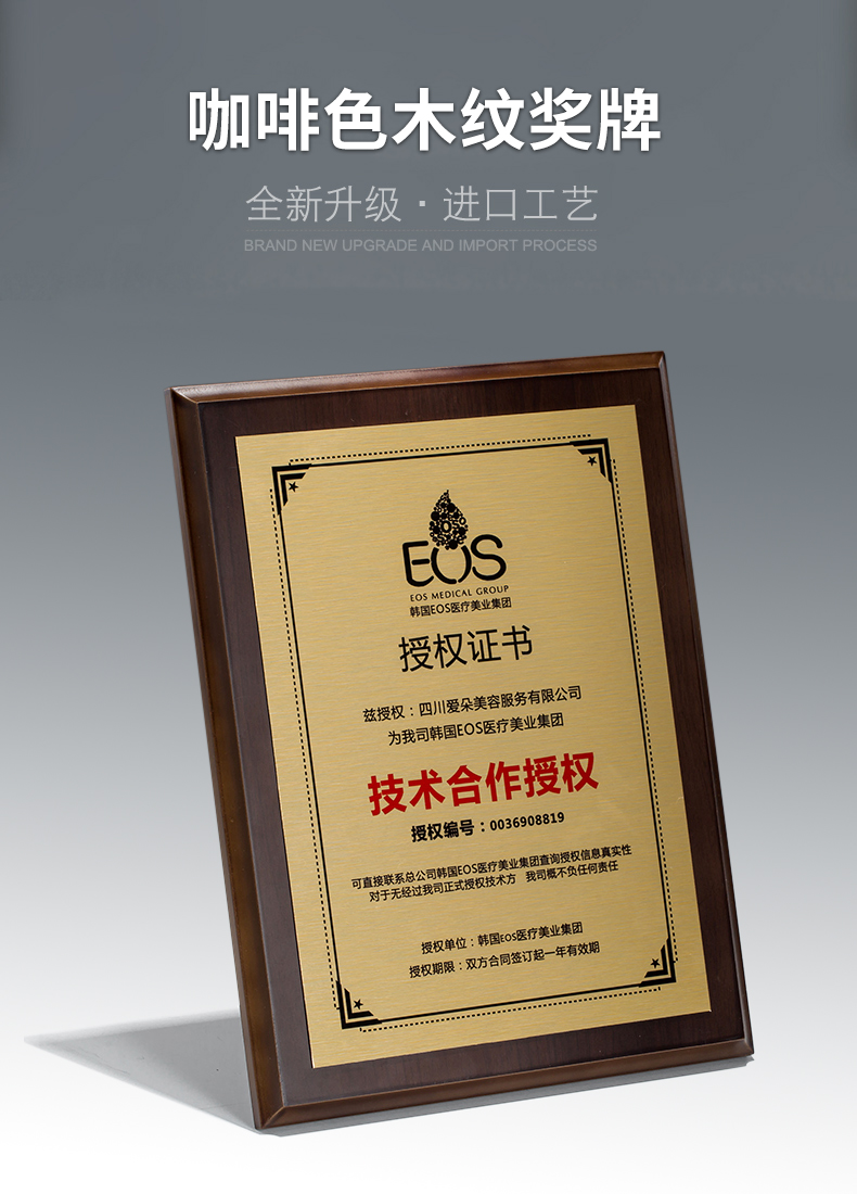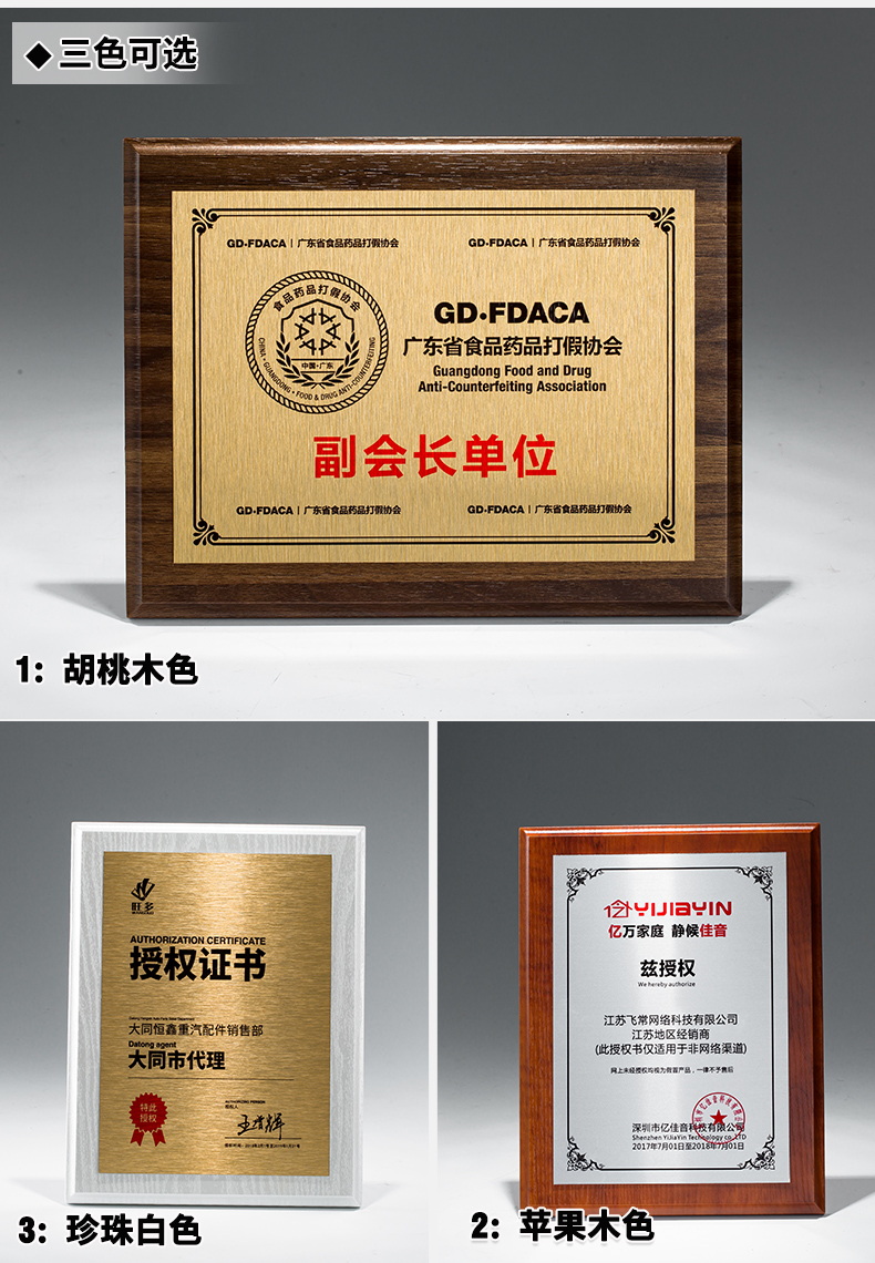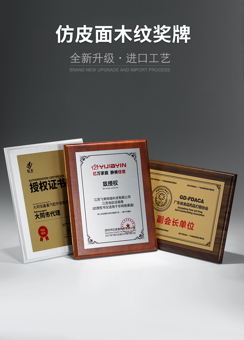 高端授权牌实木定