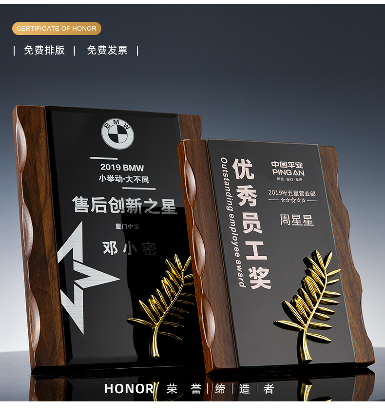 516 / 授权牌定制水晶奖牌奖杯加盟代理经销商品牌认证荣誉扁聘书定制