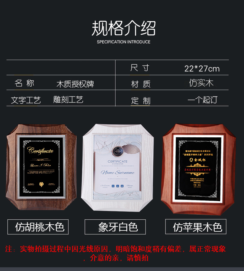 高端授权牌实木定