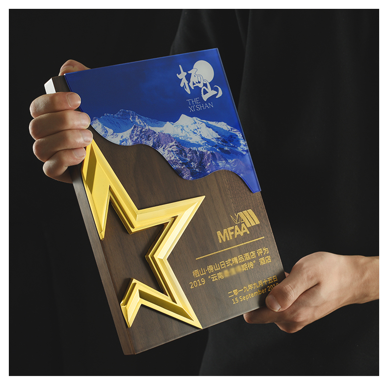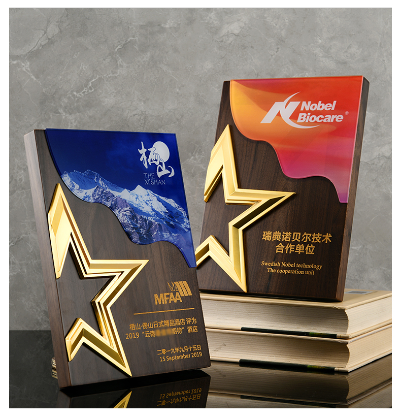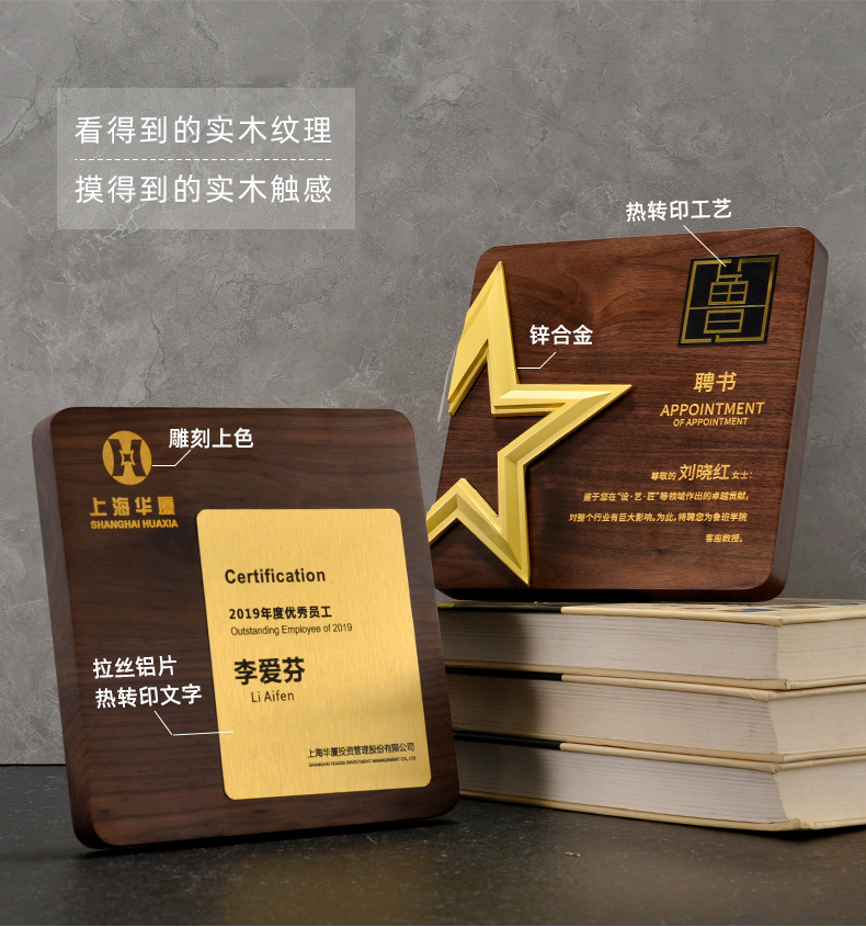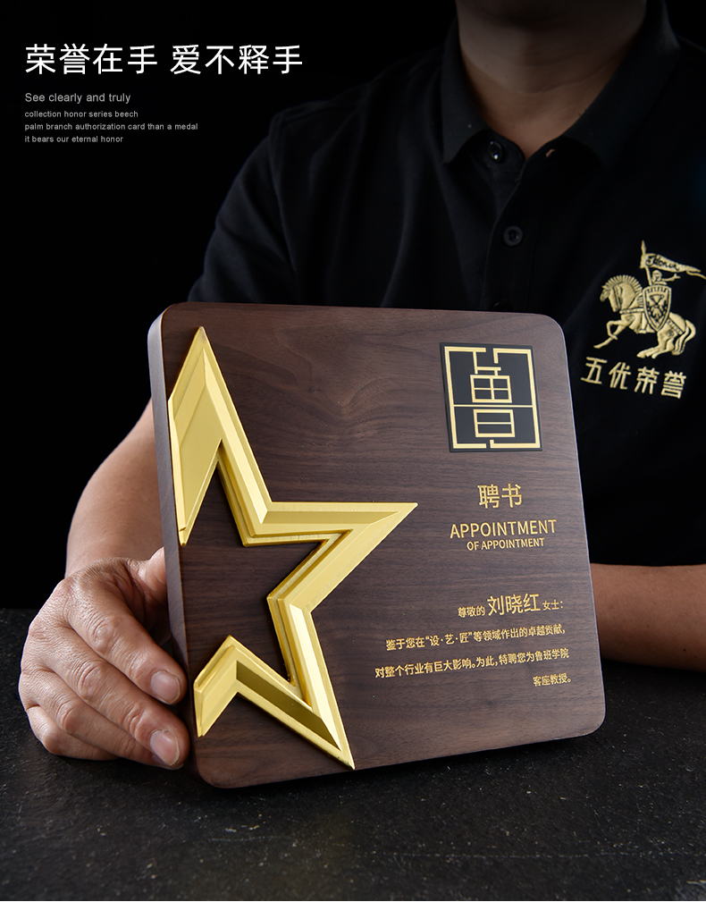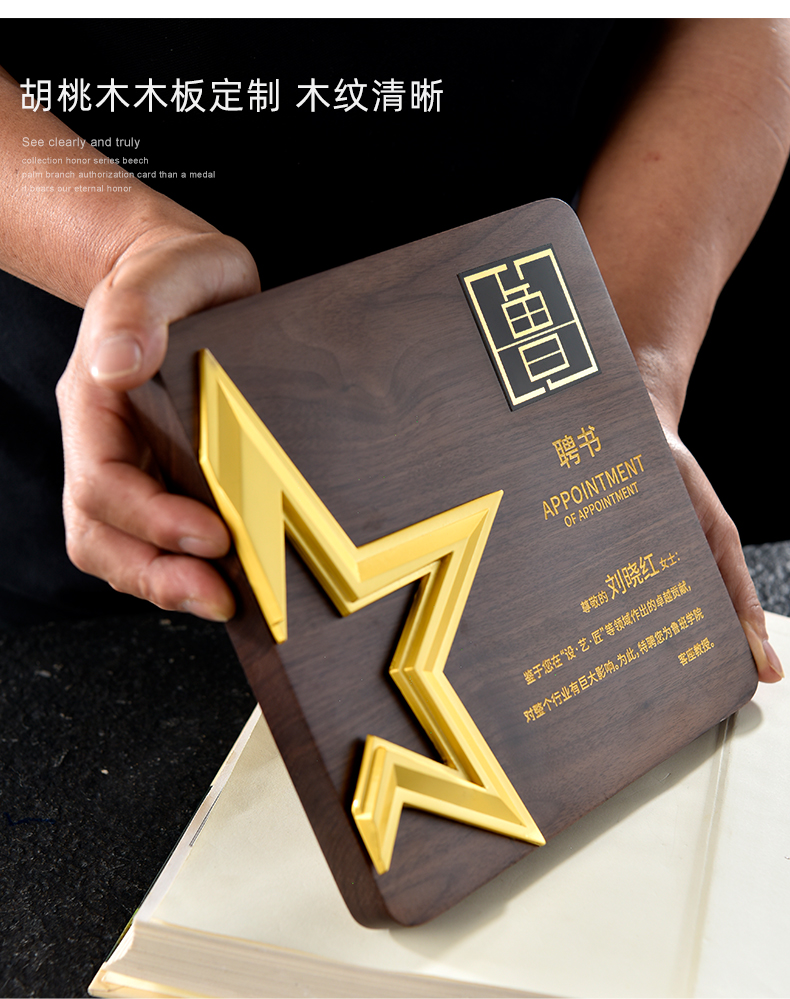 527 / 五角星胡桃实木奖牌定制授权牌荣誉证书聘书加盟代理表彰奖杯奖牌