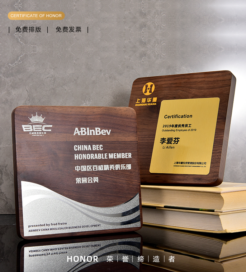 高端授权牌实木定