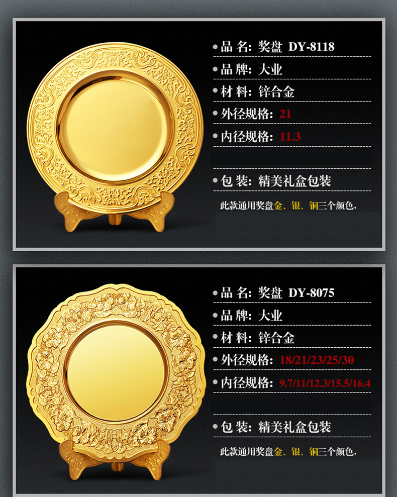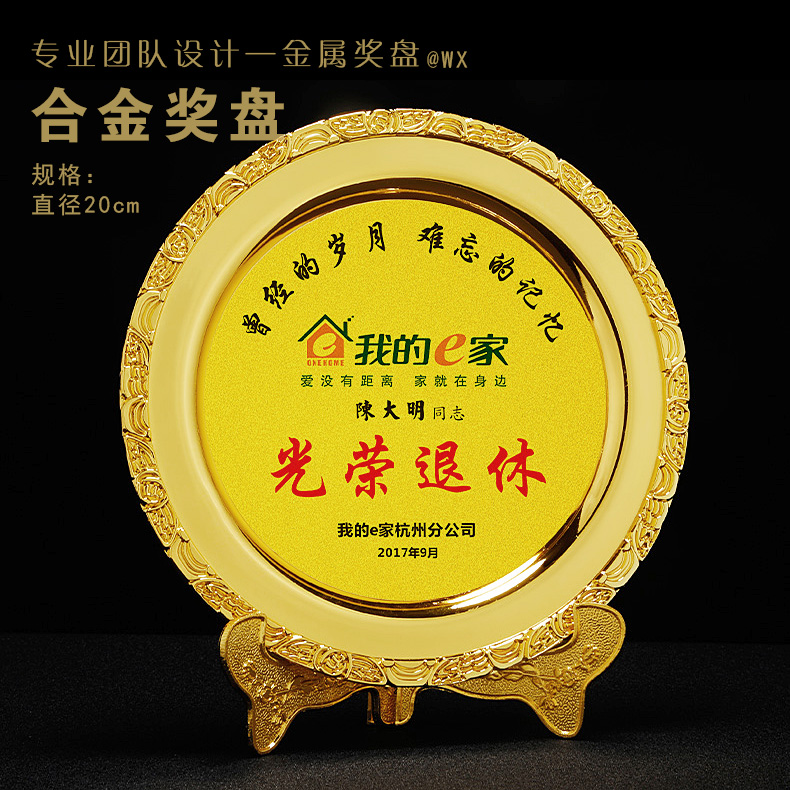 502 / 喇叭花奖盘奖牌金属锌合金奖碟商会体育运动比赛表彰颁奖定制印字