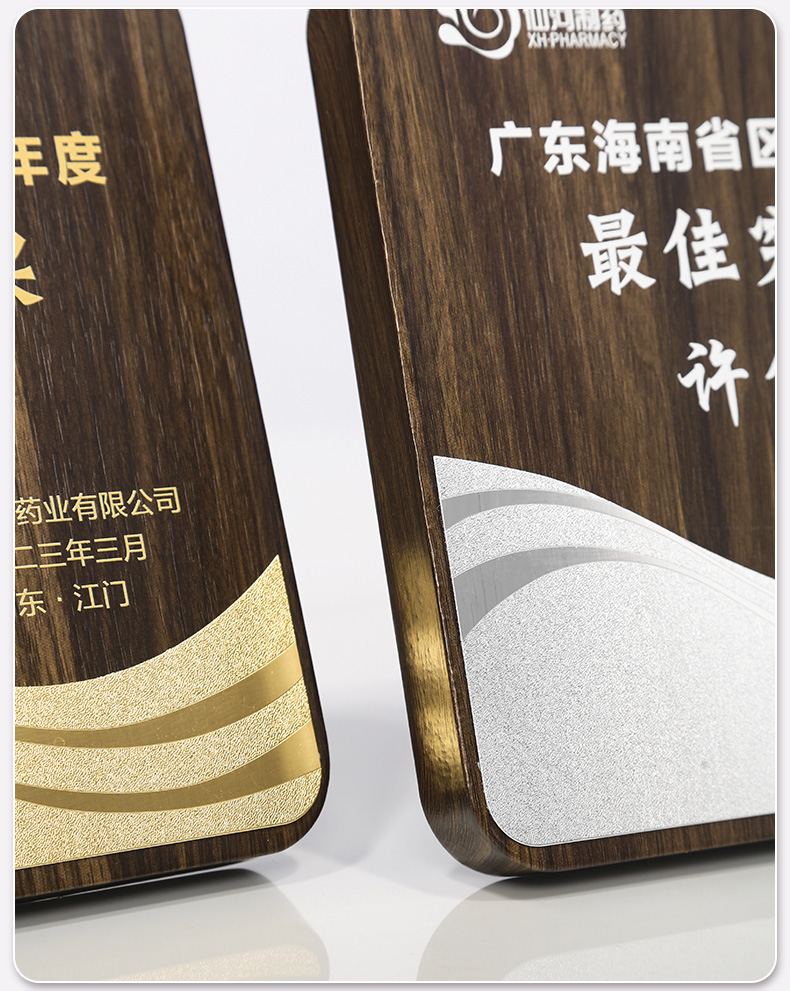 514 / 金属波浪胡桃木奖牌木质奖牌定制胡桃实木加盟牌匾代理商金箔授权牌荣誉退休铜牌定做