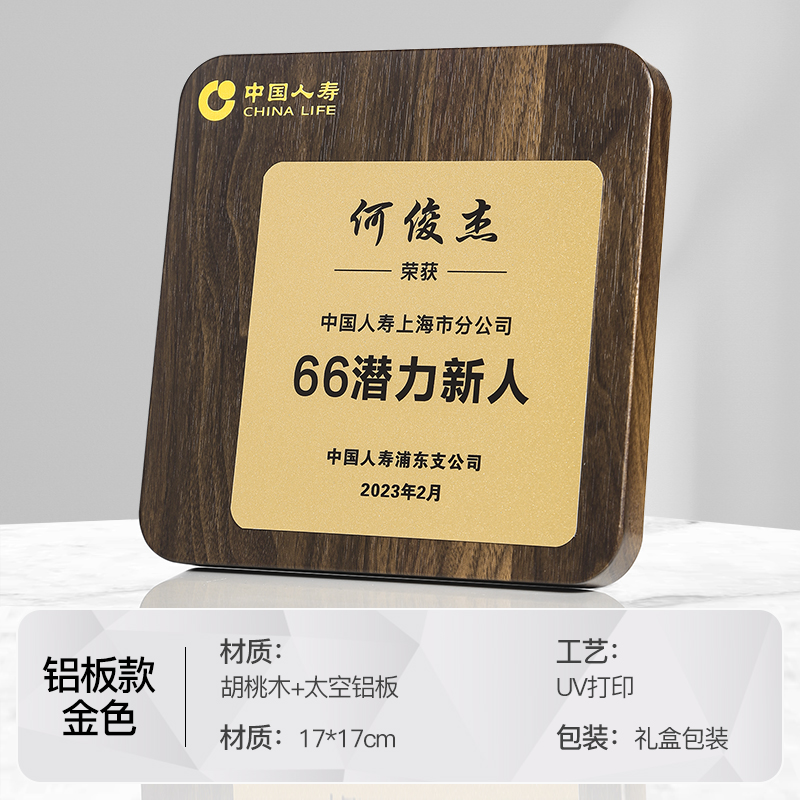 517 / 航空铝板胡桃木奖牌胡桃木奖牌定制高档木质荣誉牌匾挂墙证书聘书加盟会员授权牌订制