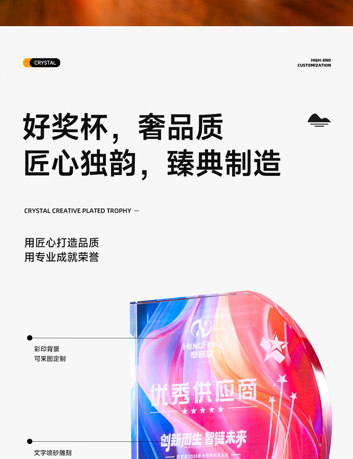 水晶奖杯定制彩印