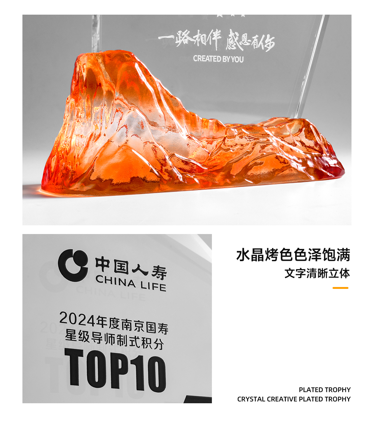 222 / 水晶奖杯定制高档大气创意山峰企业优秀员工光荣退休琉璃奖杯订制