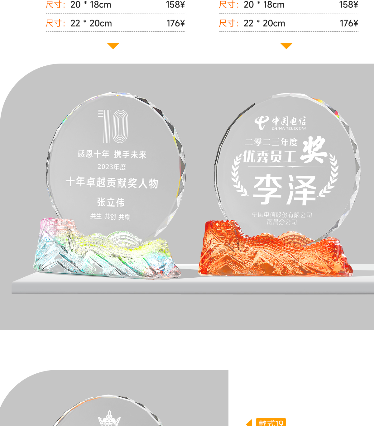 水晶挂牌奖牌