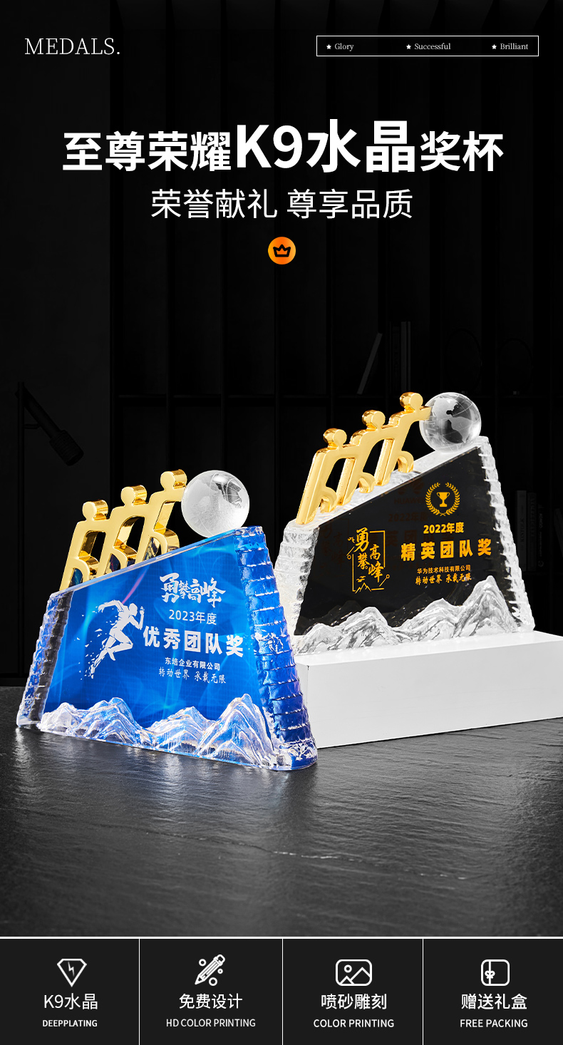 1024 / 高档冰山团队水晶奖杯奖牌创意定制刻字比赛优秀员工表彰纪念制作