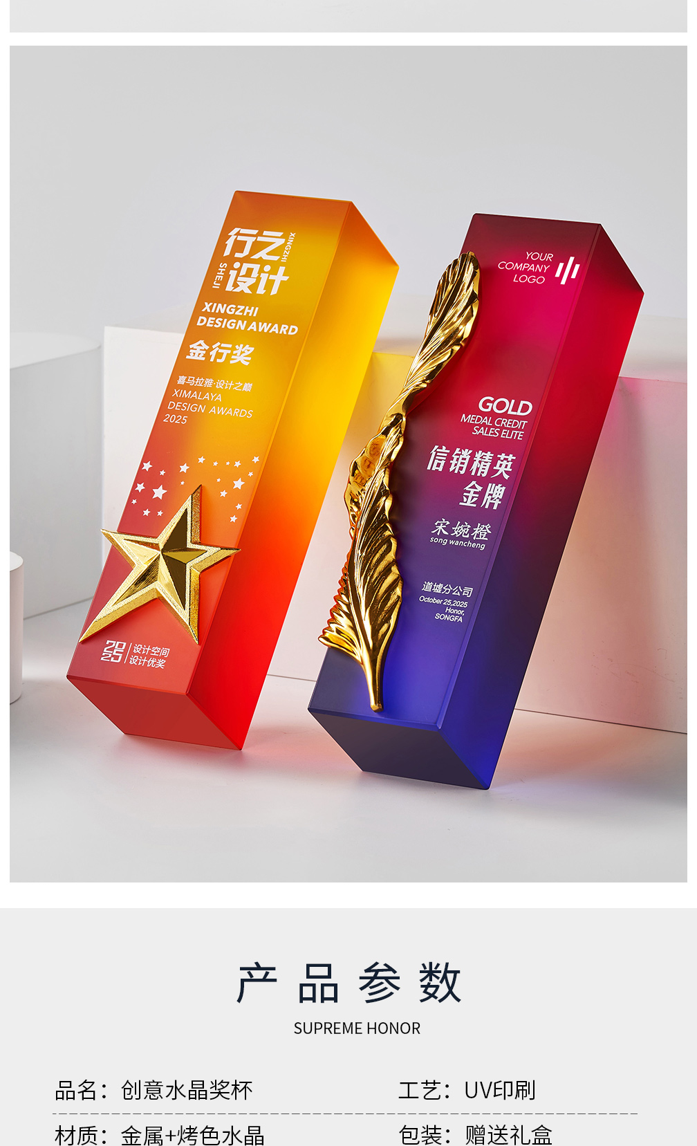 水晶奖杯定制彩印