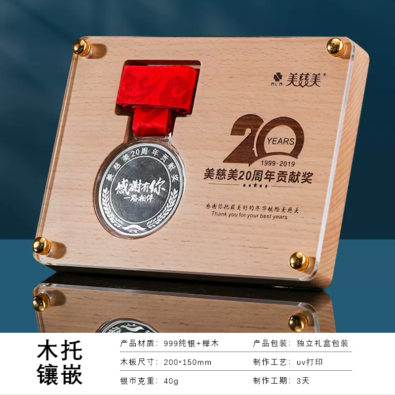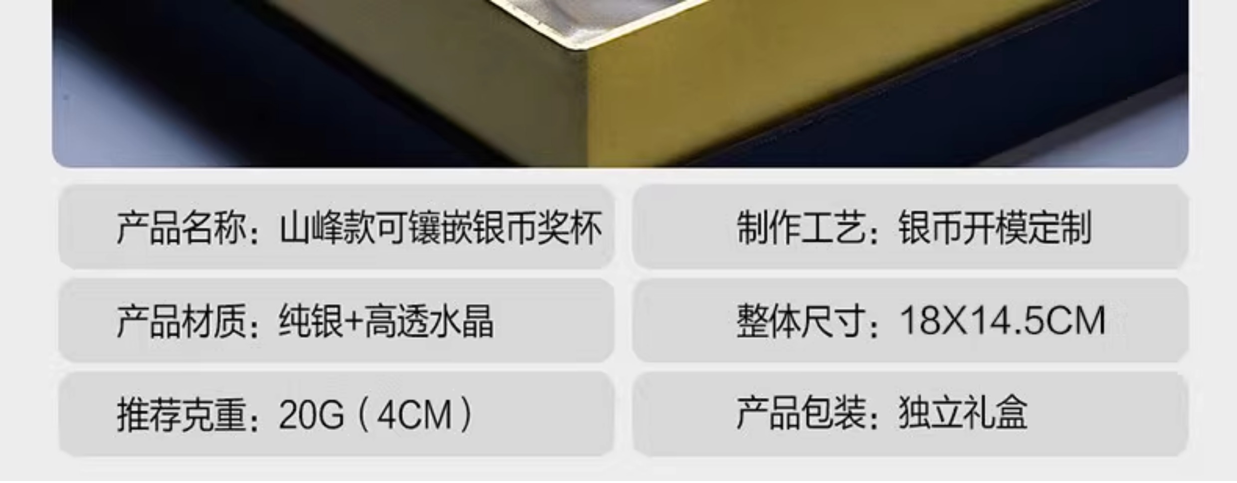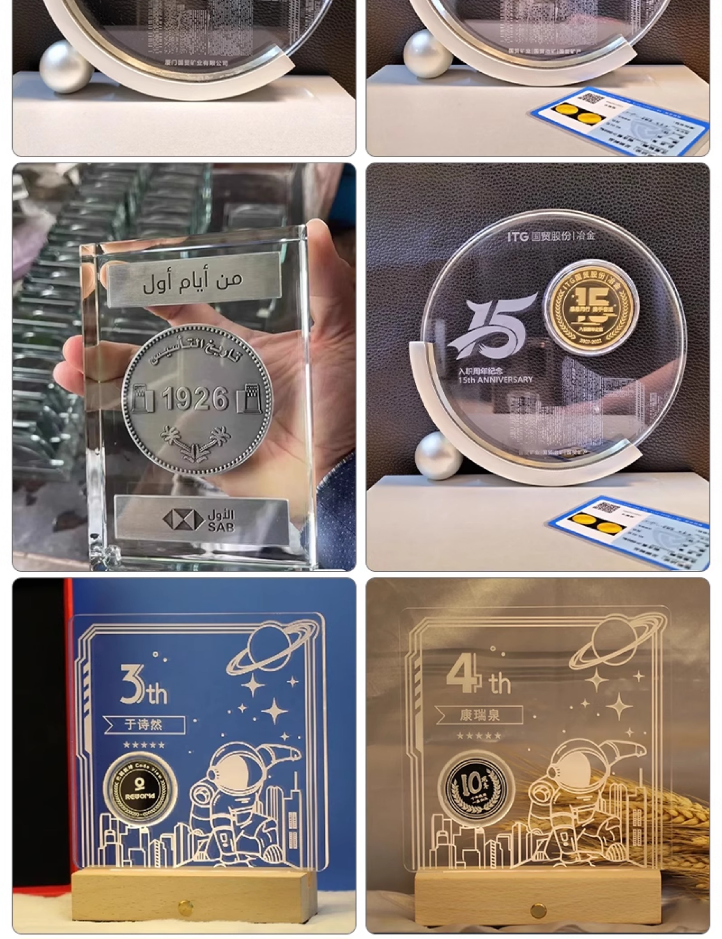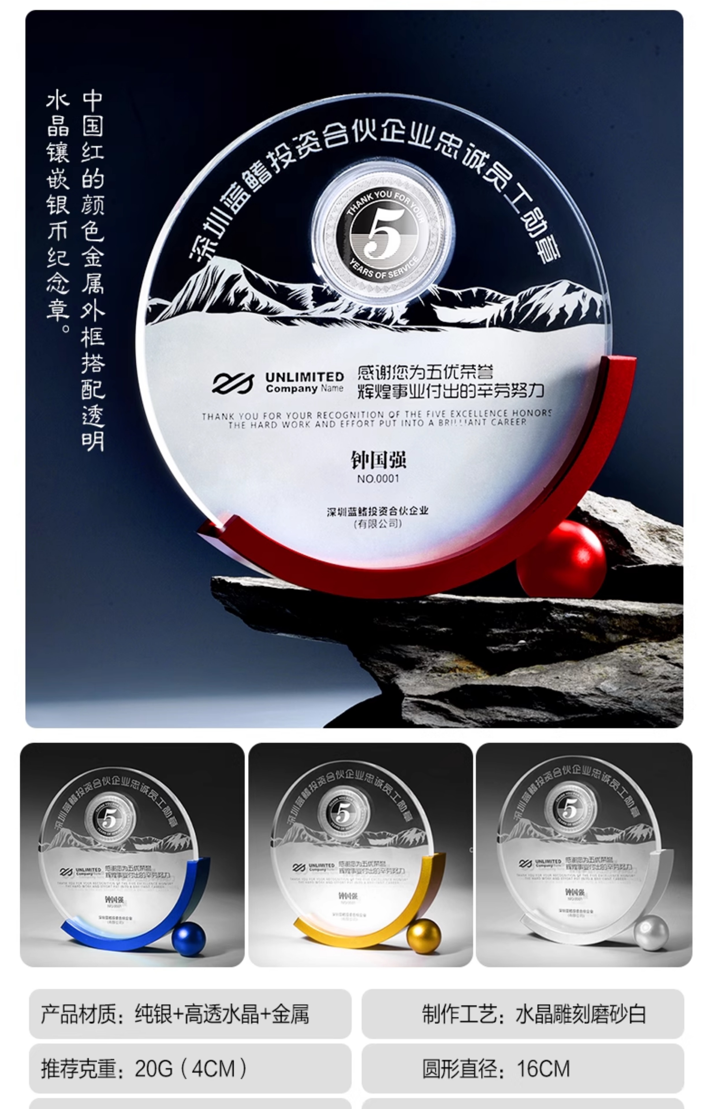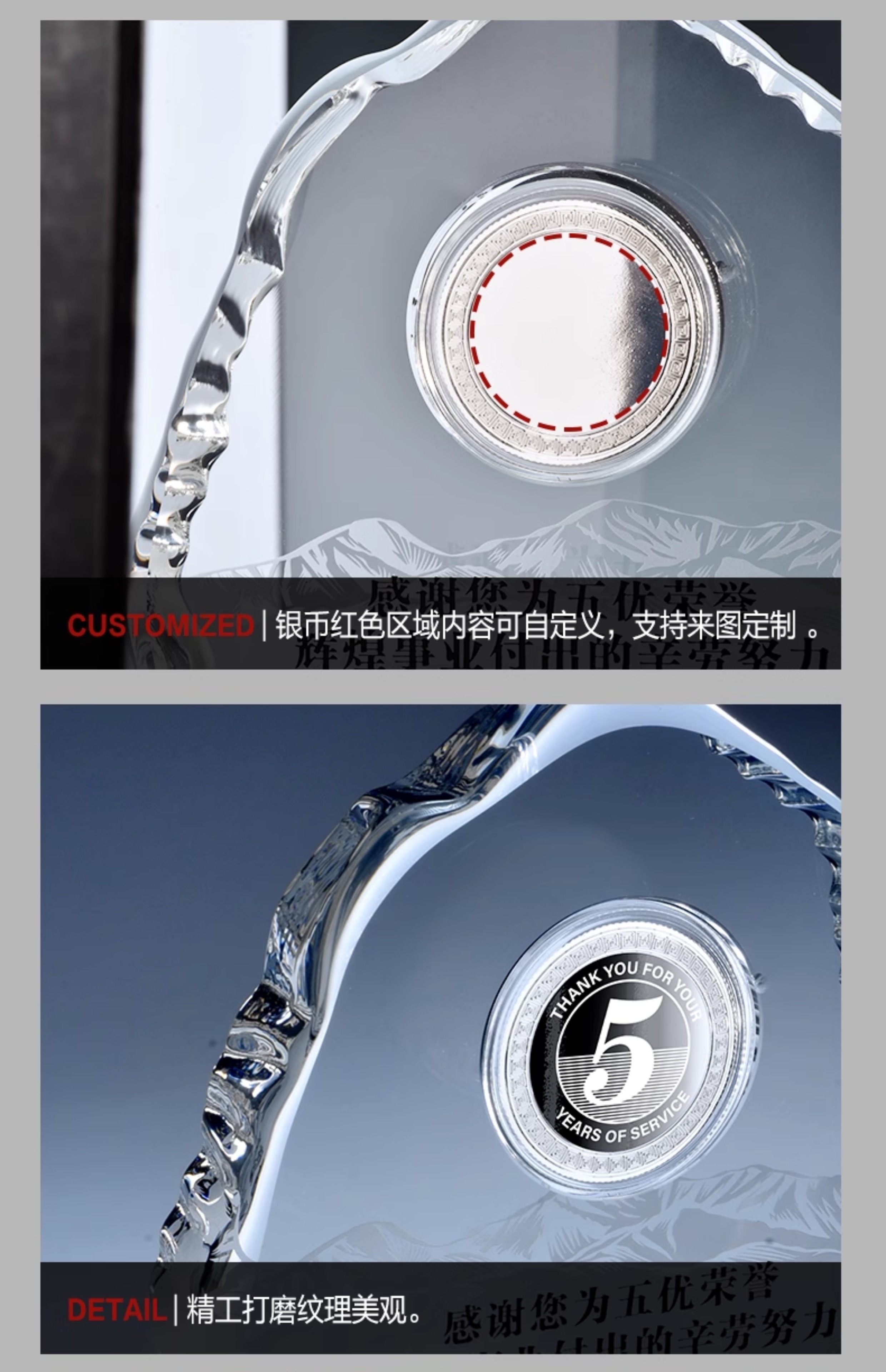134 / 纯银纪念金币银币镶嵌高端水晶奖杯奖牌定制荣誉周年庆达人冠军