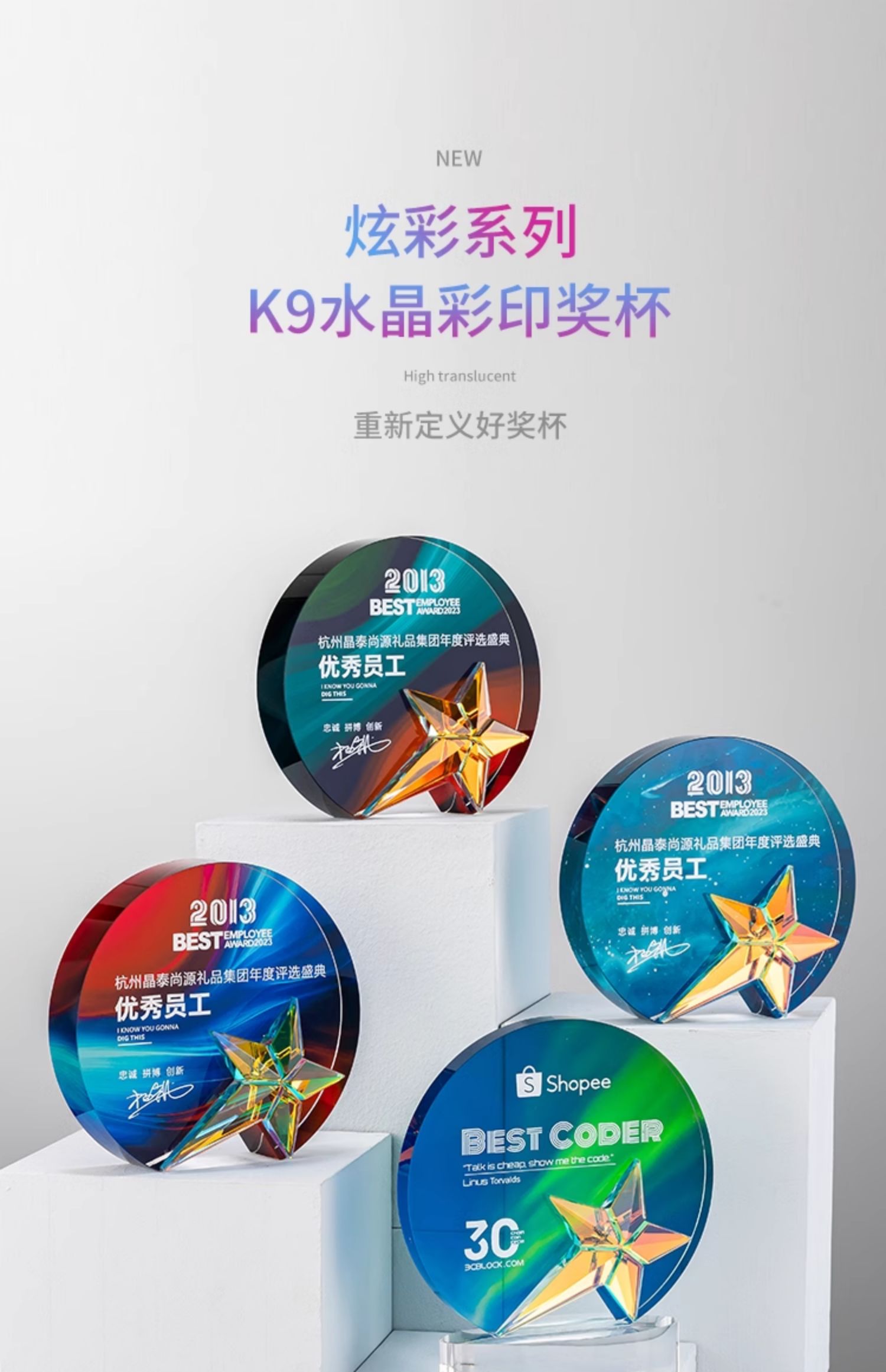 210 / 高档炫彩创意彩色水晶奖杯比赛冠军企业周年年会优秀员工荣誉纪念