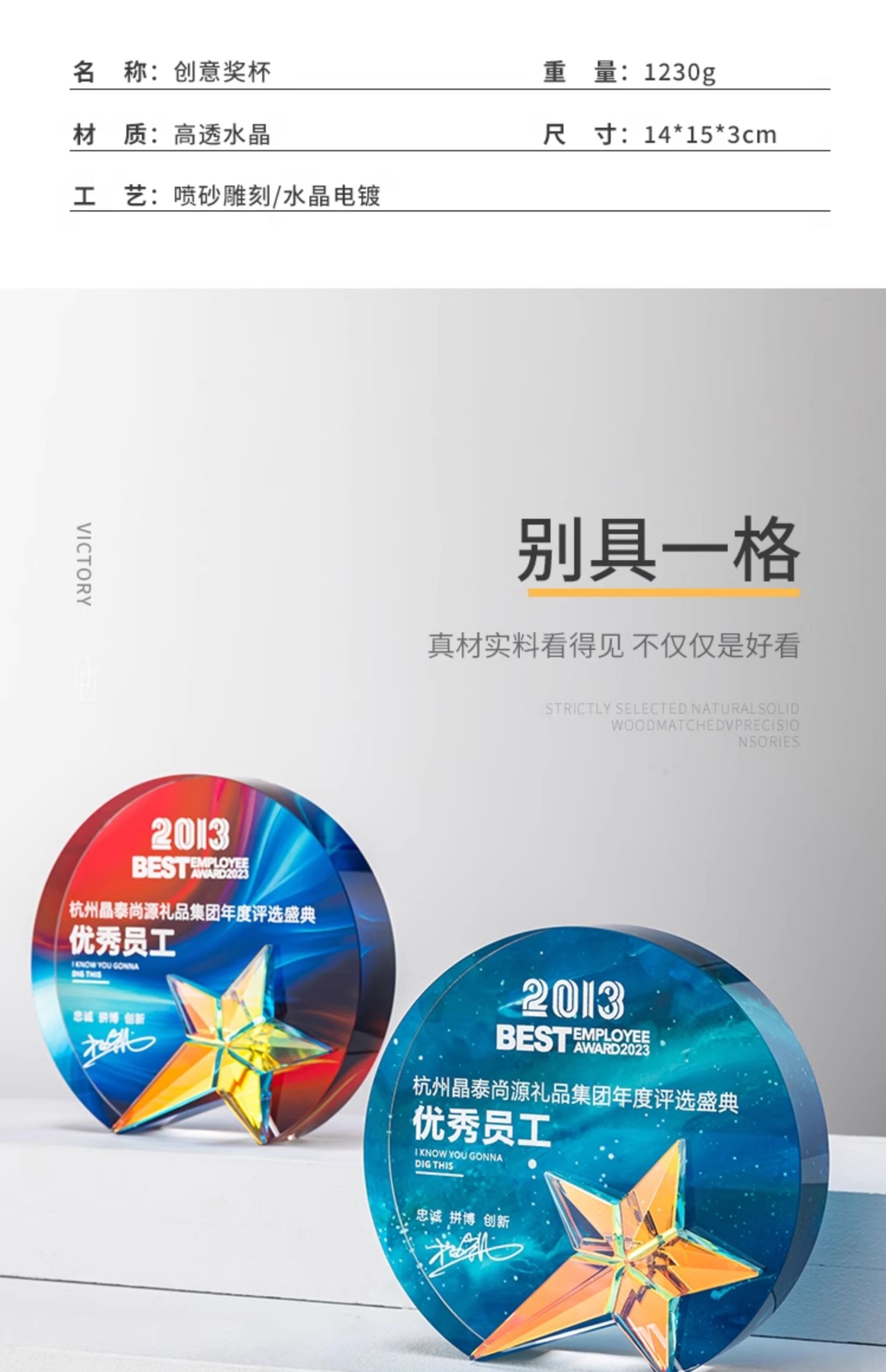 新款树脂水晶奖杯