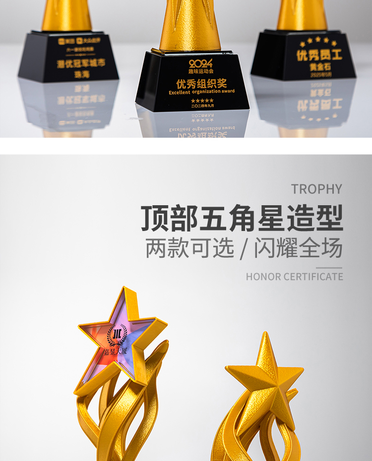 313 / 【3D打印奖杯】2025新款水晶奖杯3d打印创意星星奖杯定制奖杯牌公司定做刻字颁奖