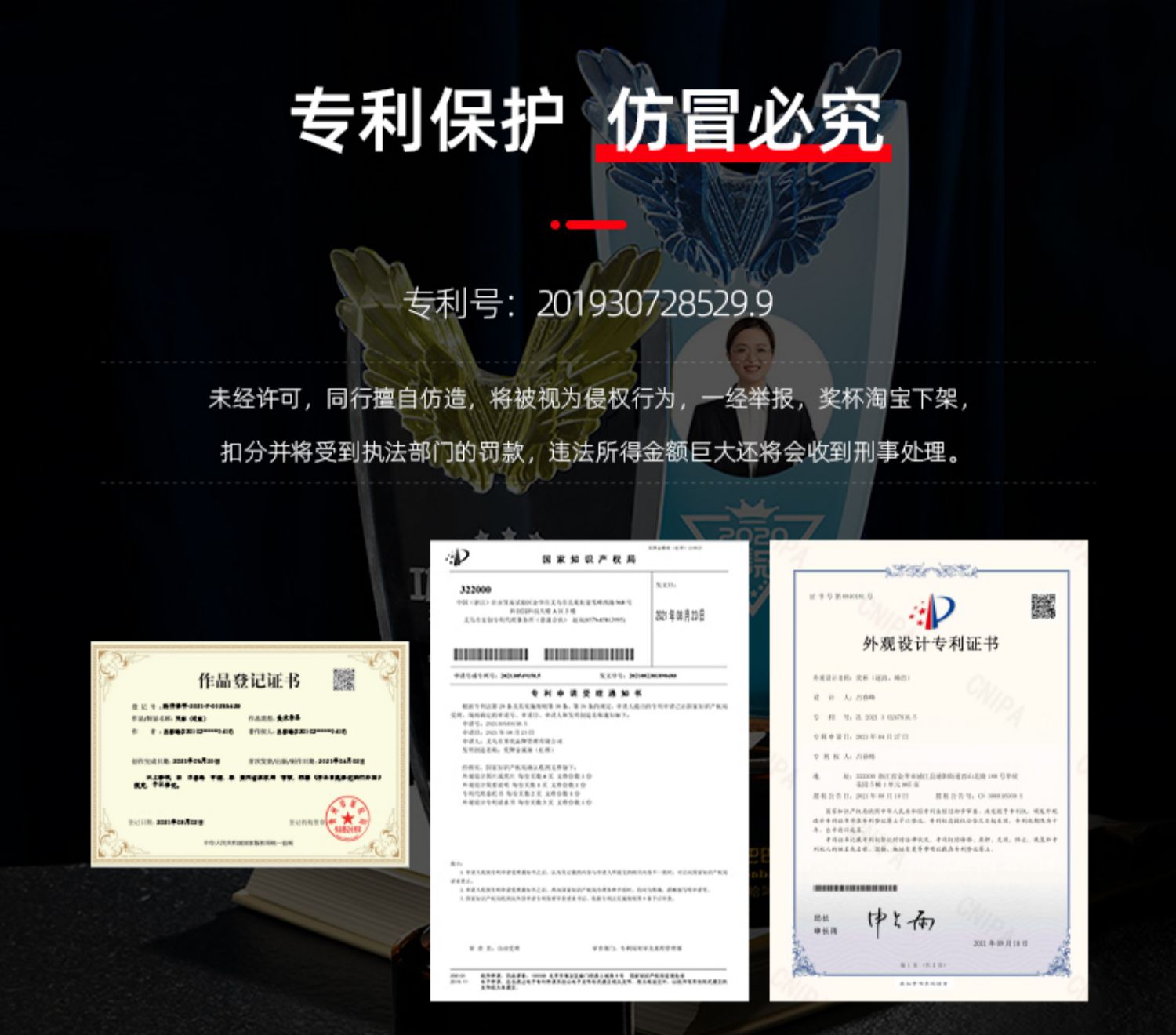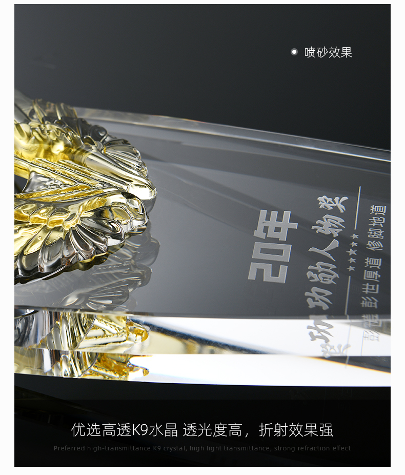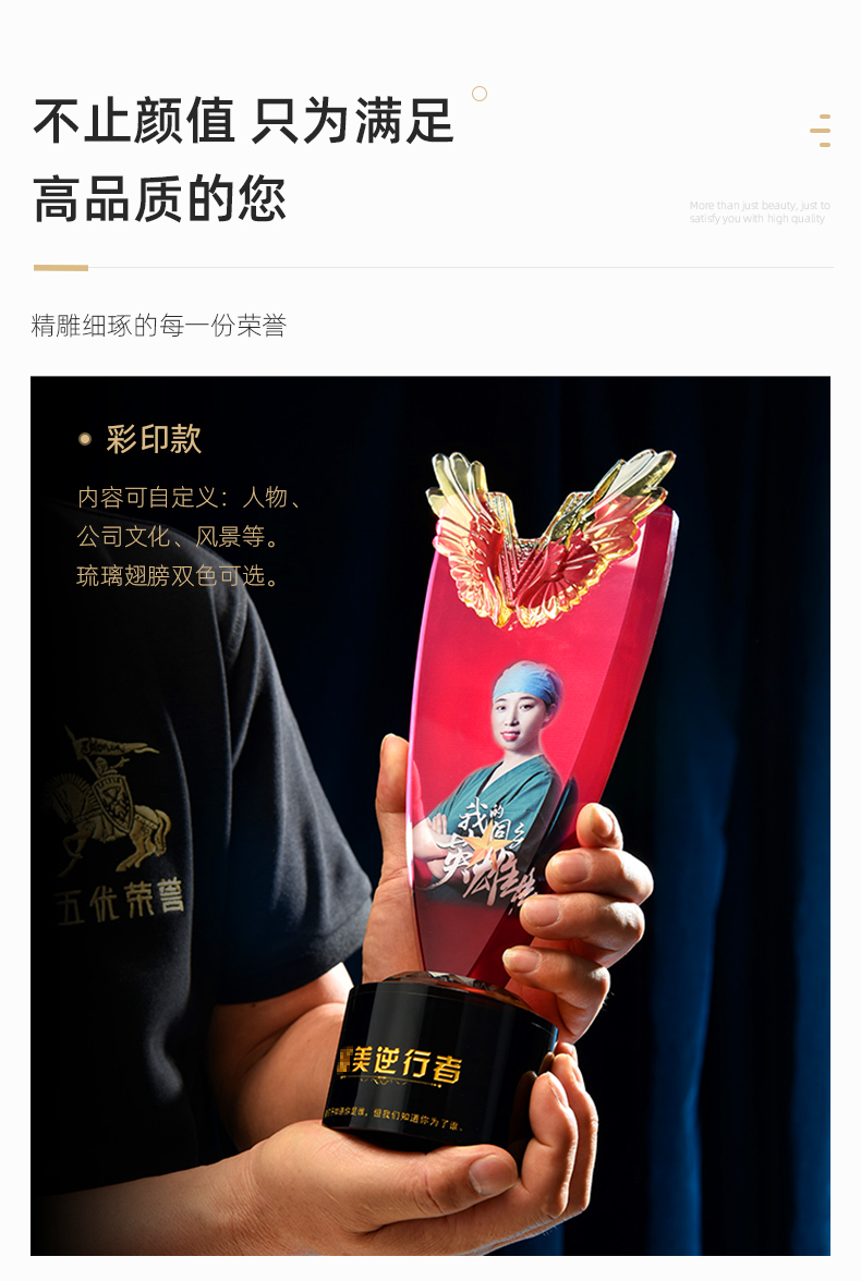 1022 / 新款翅膀高档大气水晶奖杯奖牌创意定做定制优秀员工周年庆纪念品