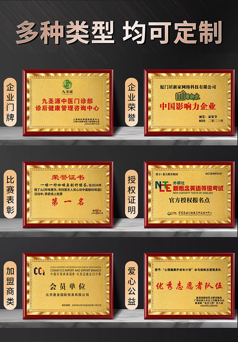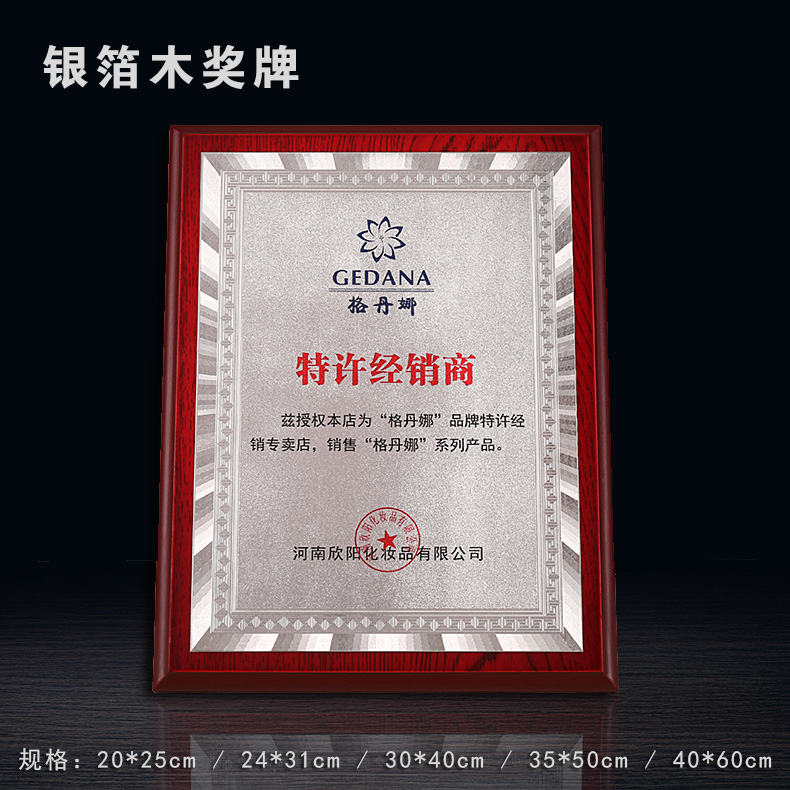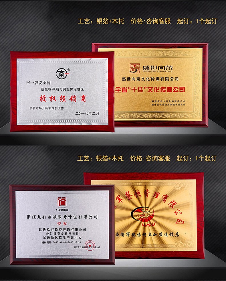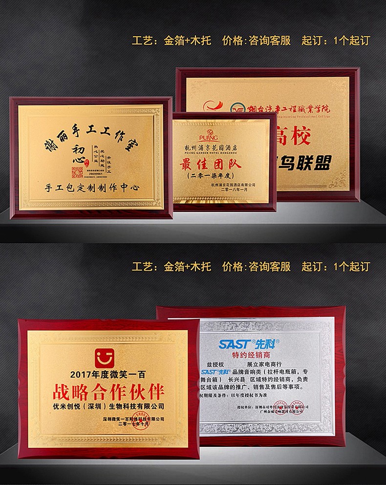 508 / 金箔奖牌定制定做实木授权牌荣誉牌牌匾制作木托铜牌木质代理证书