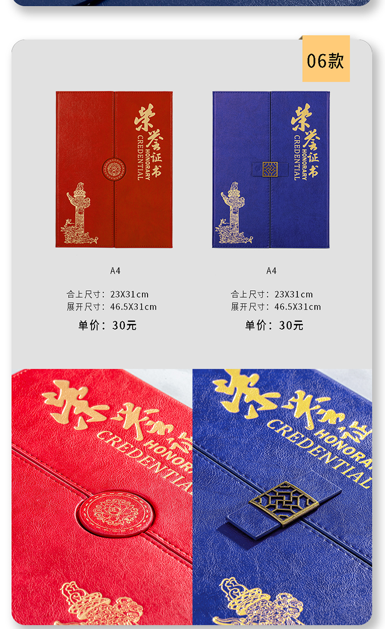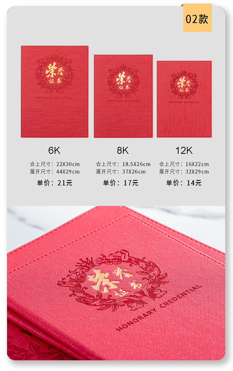 高档豪华纸皮奖状