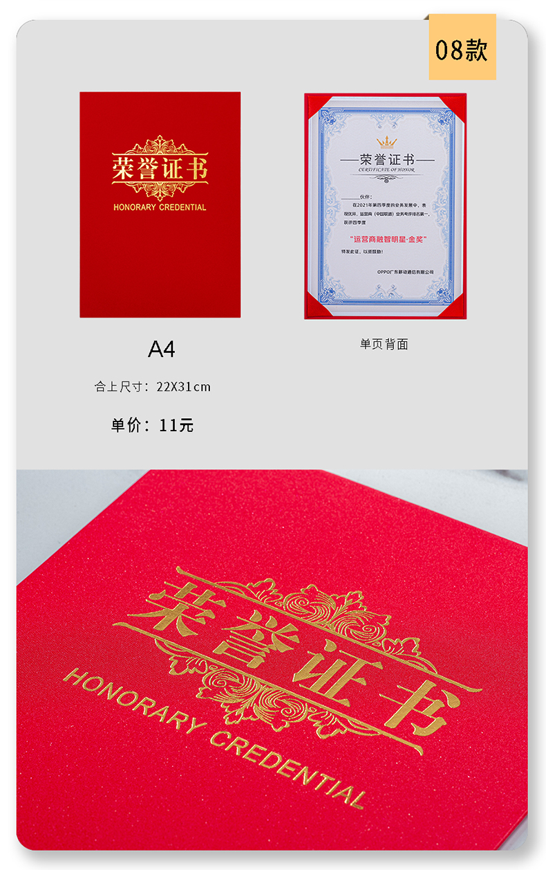 烫金荣誉证书定制