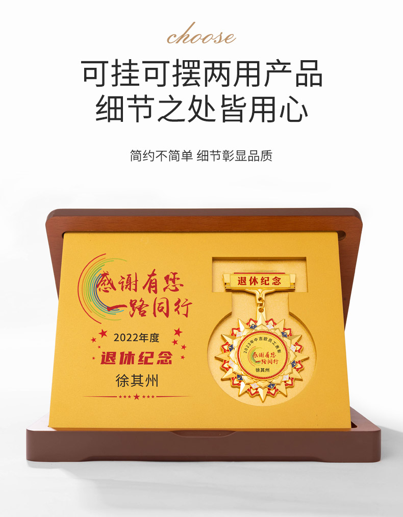 616 / 勋章定做折叠木板奖章退休十周年胸徽章年会优秀员工表彰颁奖奖牌