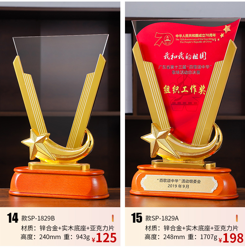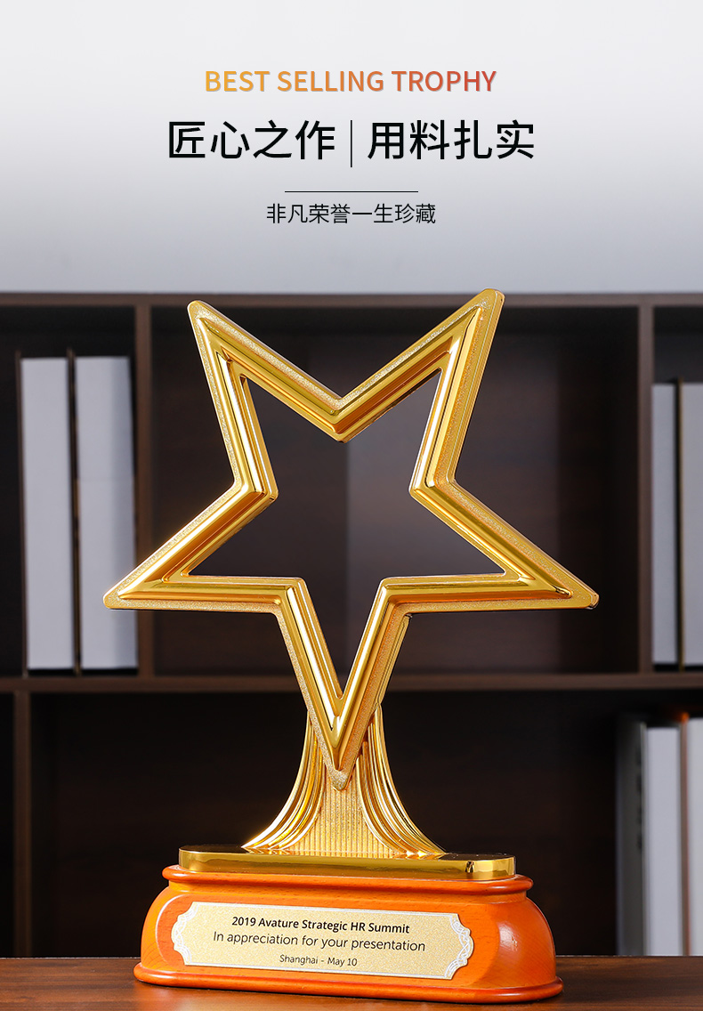 611 / 五角星亚克力奖杯定做个性创意刻字金属奖牌奖杯年会颁奖纪念定制
