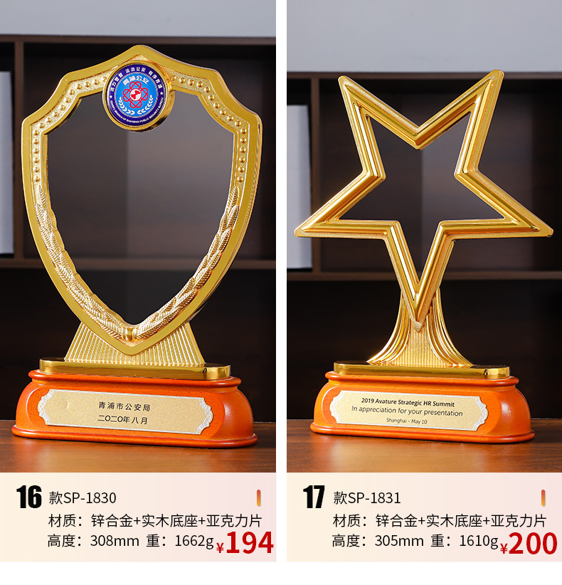 树脂纯金属奖杯金