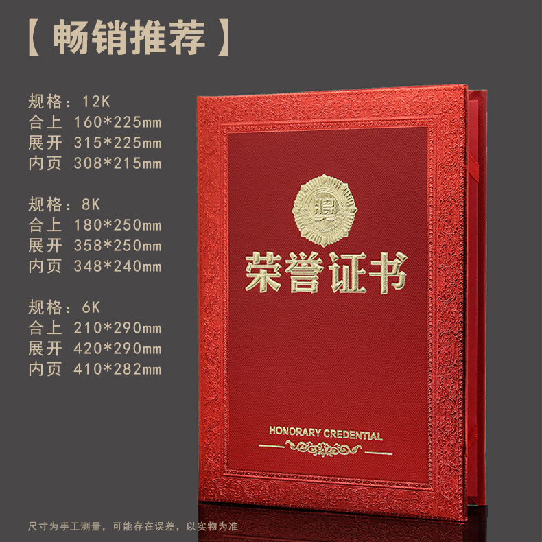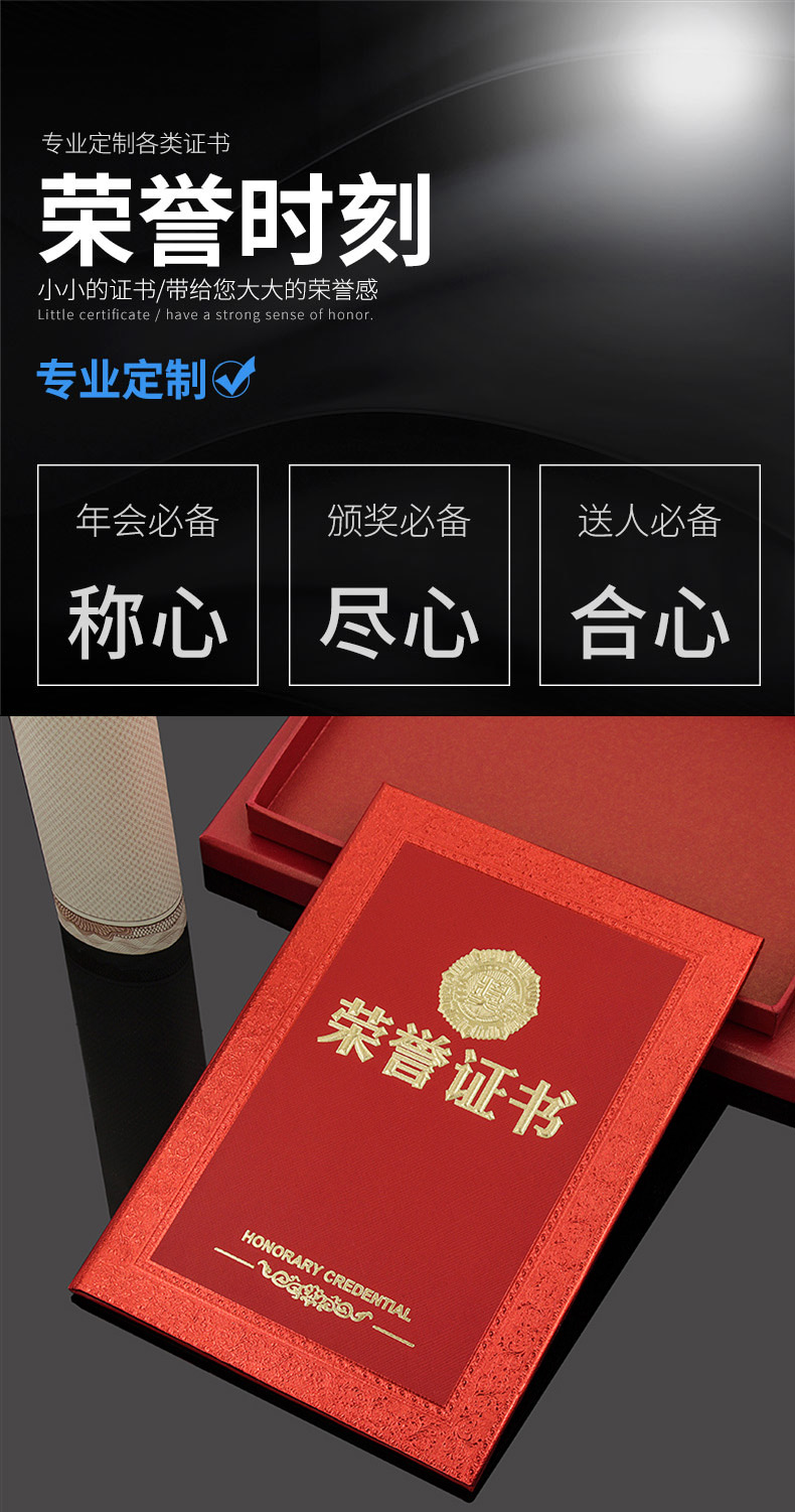 741 / 高档豪华纸皮奖状证书荣誉证书12K烫金聘书内页可打印证书可定制