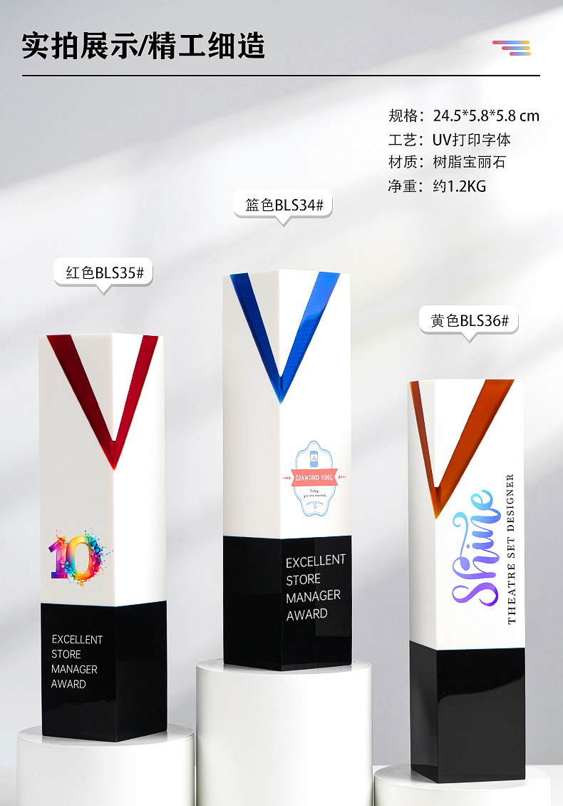 433 / 高档新款树脂宝丽石奖杯定制销售冠军比赛年会订制荣誉牌奖牌创意
