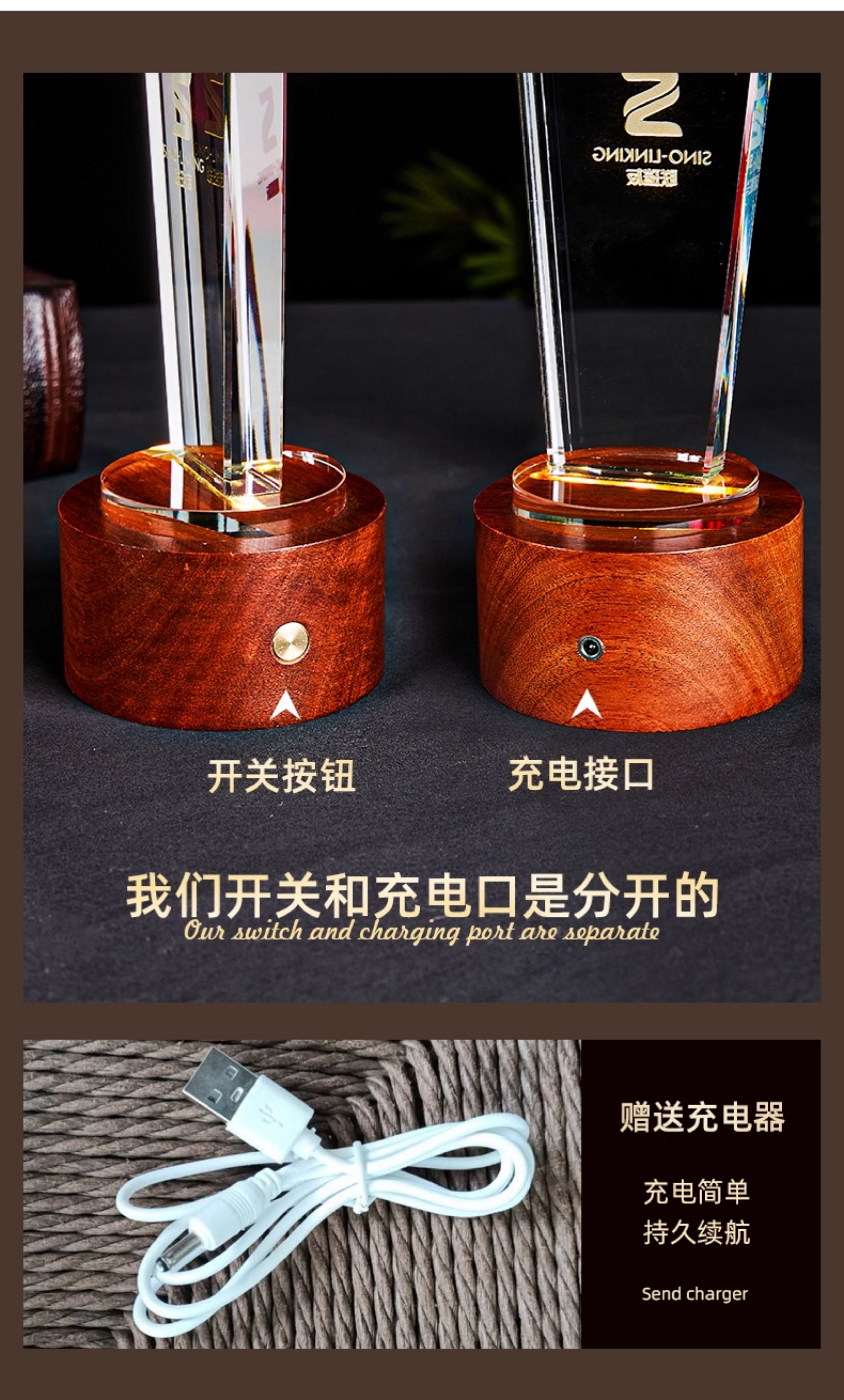 【实木水晶奖杯】