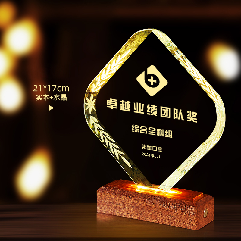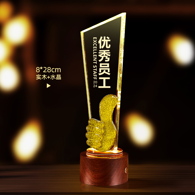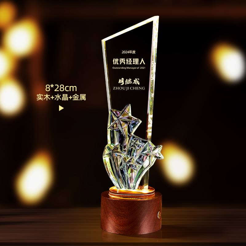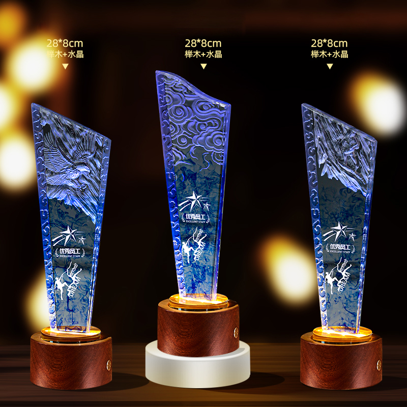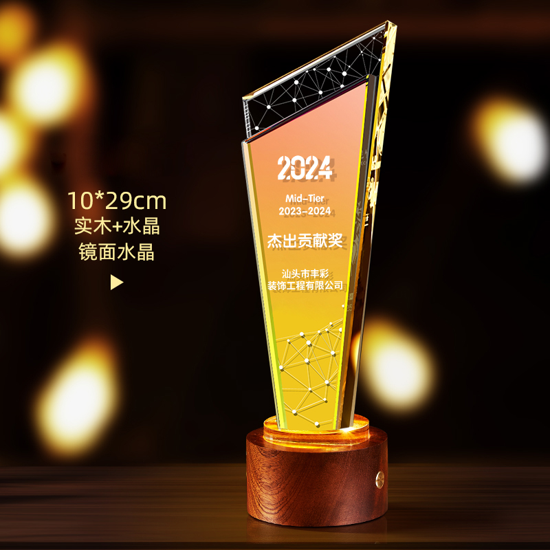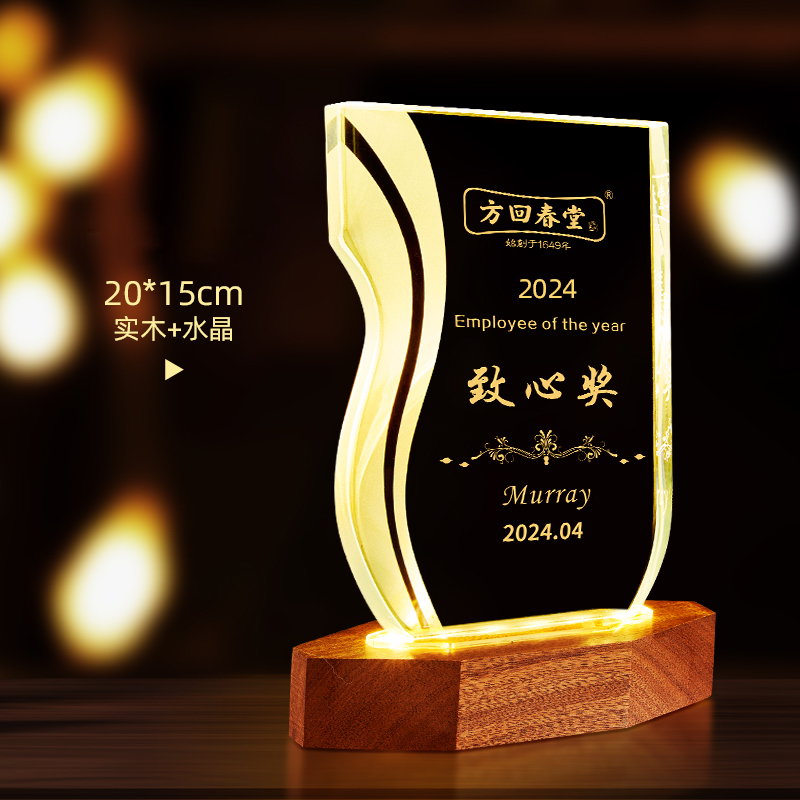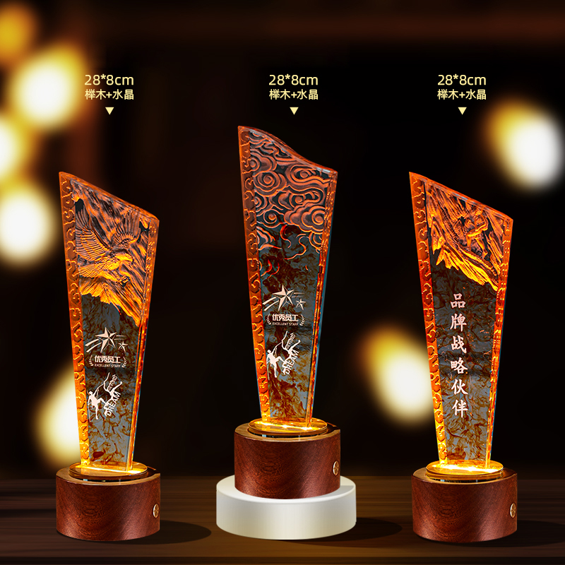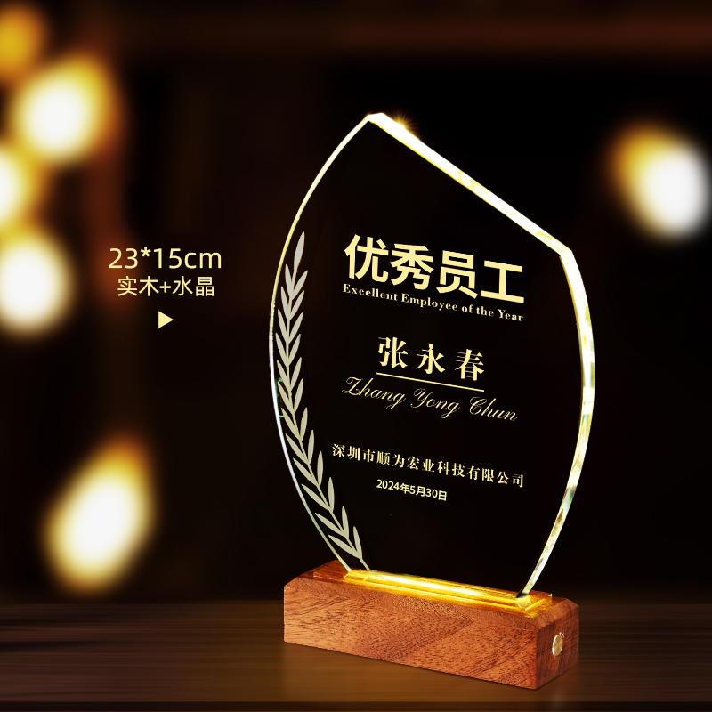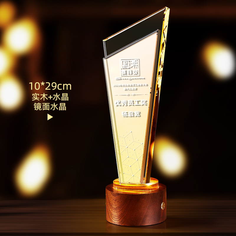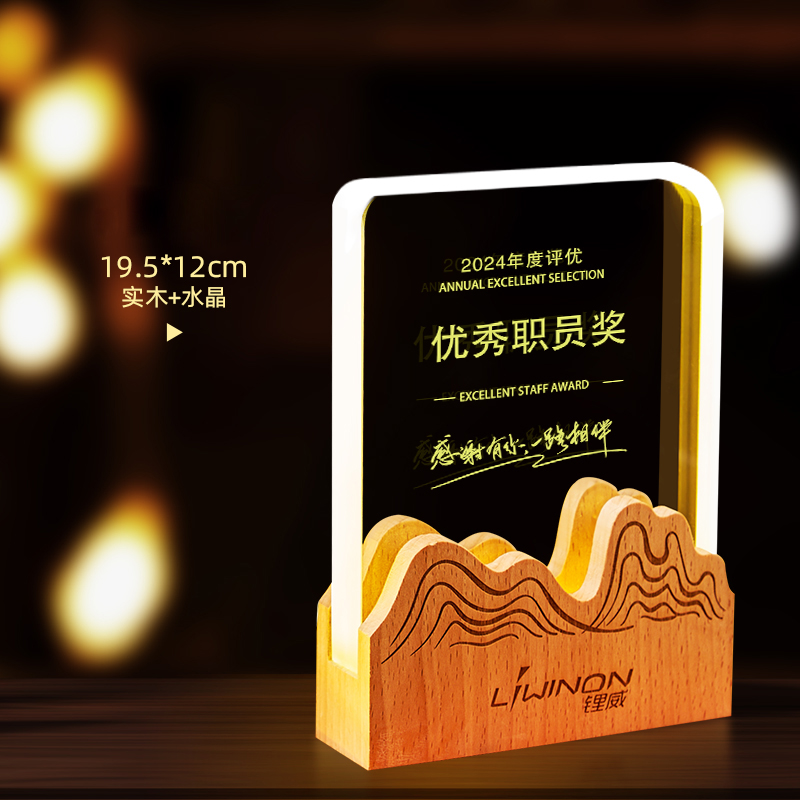 10003 / 水晶奖杯订制发光高档实木创意优秀员工定制公司年会颁奖牌纪念品
