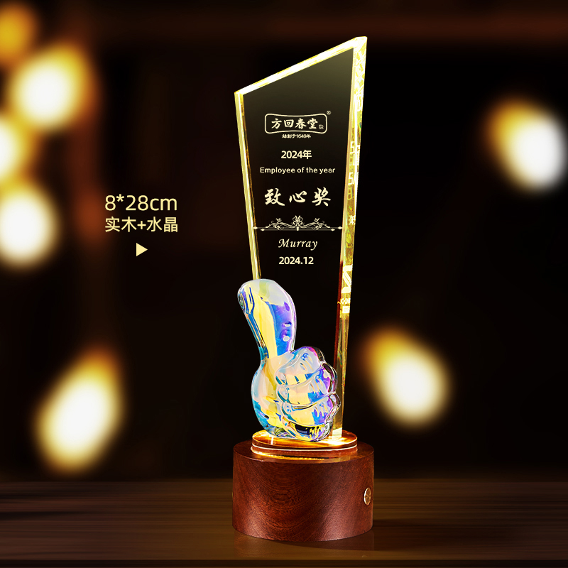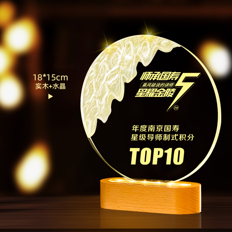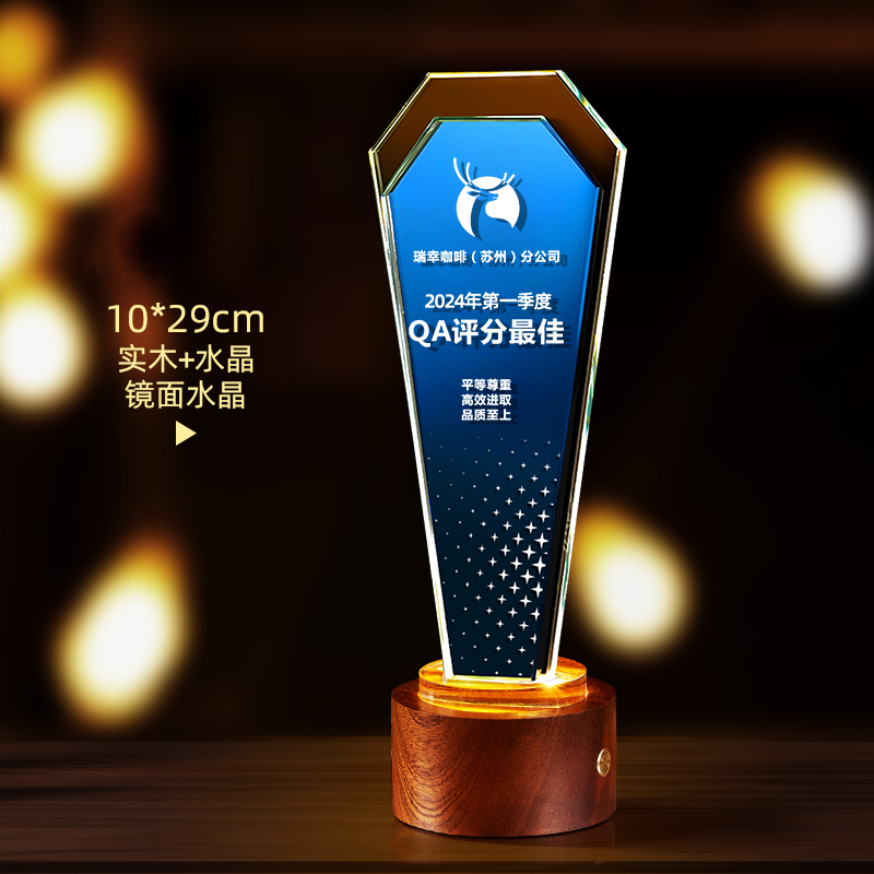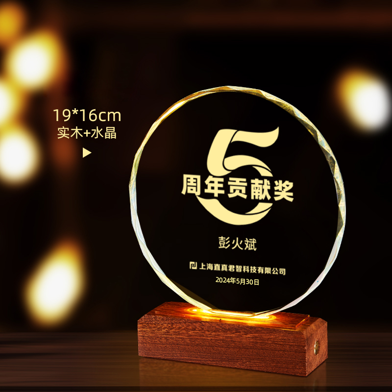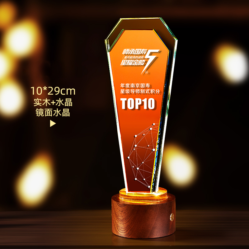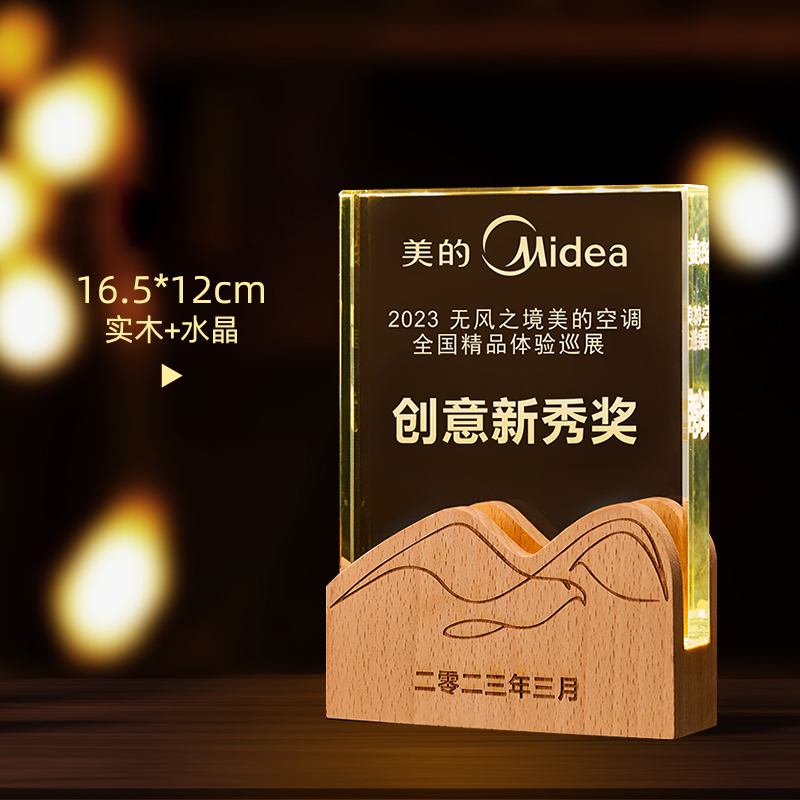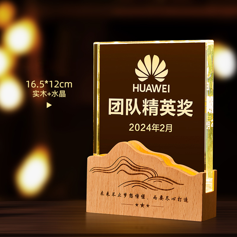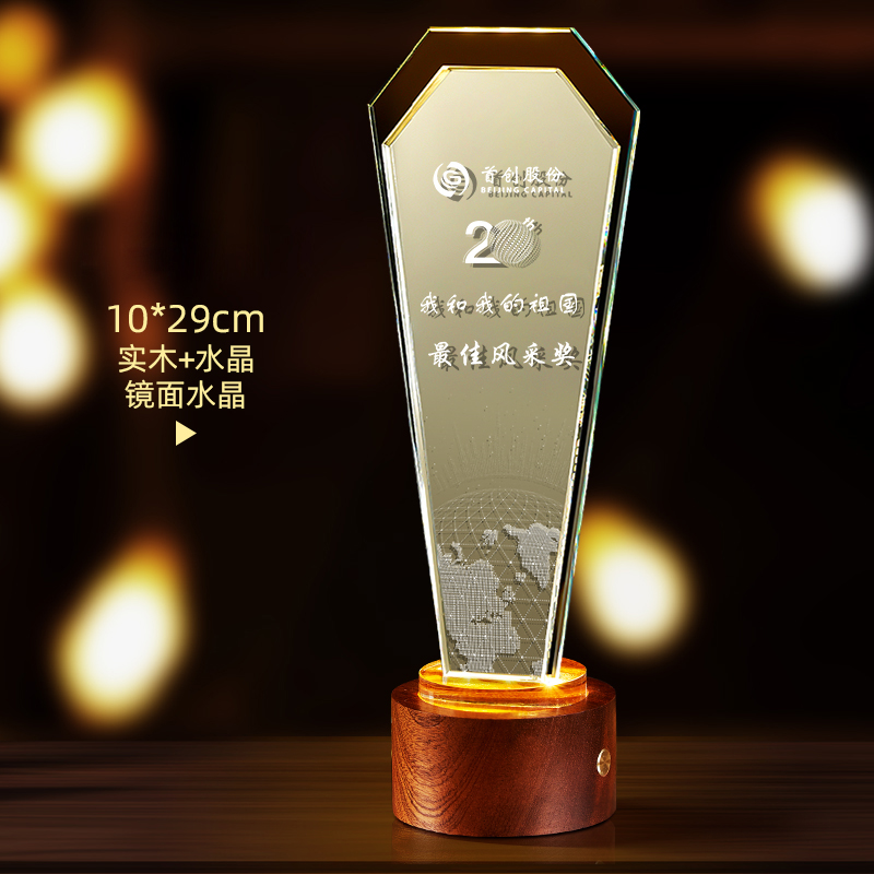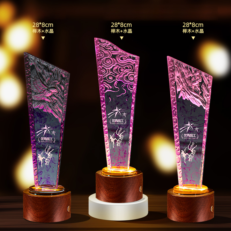 10003 / 水晶奖杯订制发光高档实木创意优秀员工定制公司年会颁奖牌纪念品