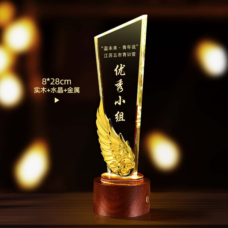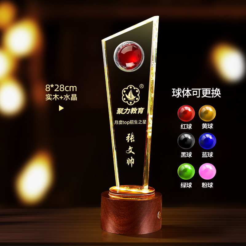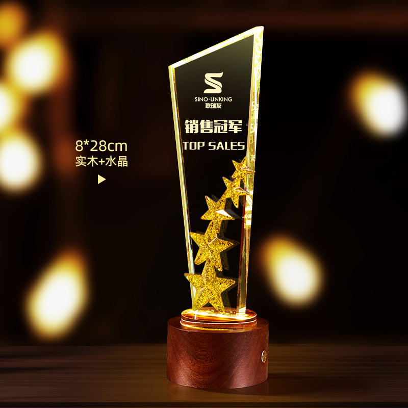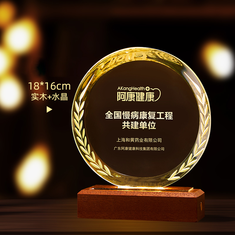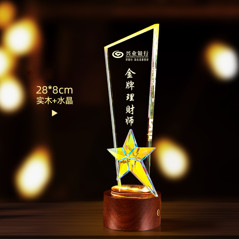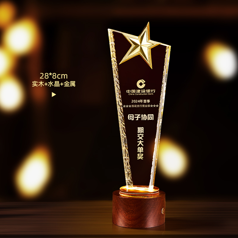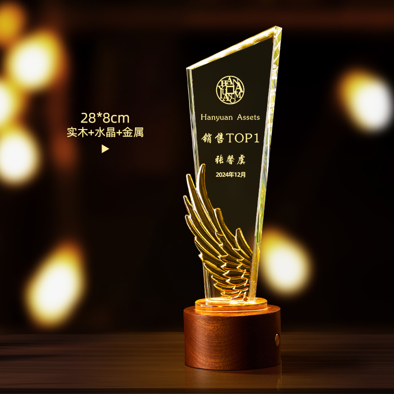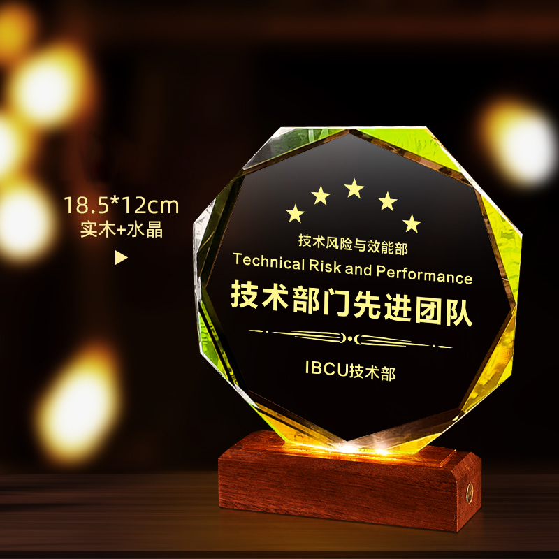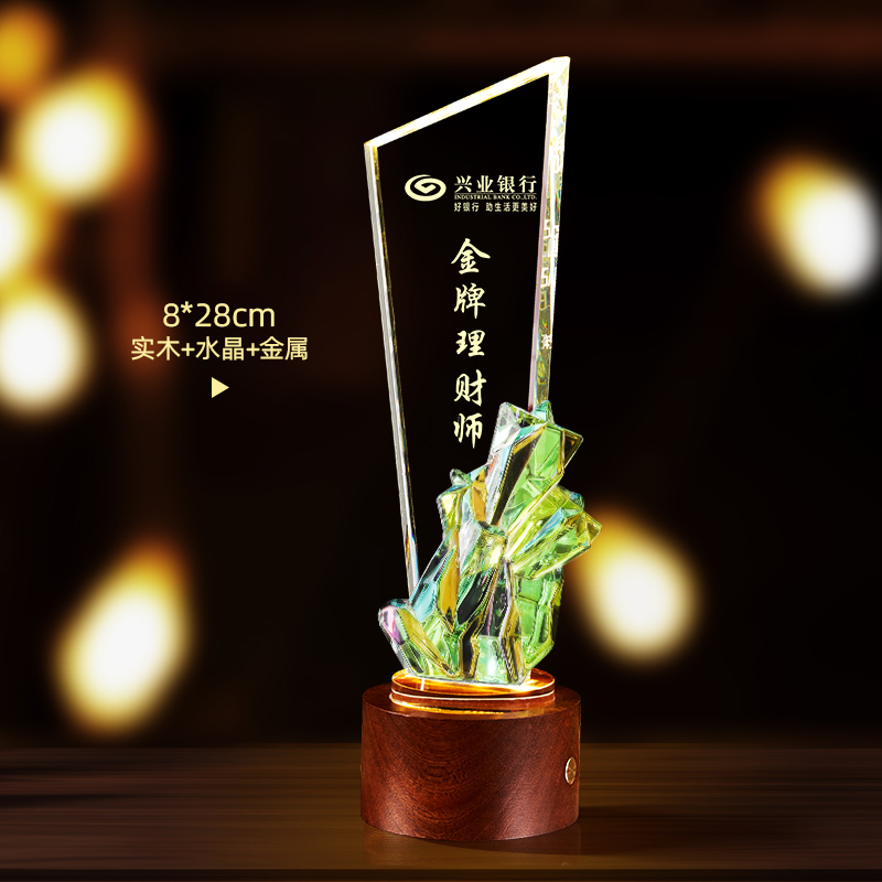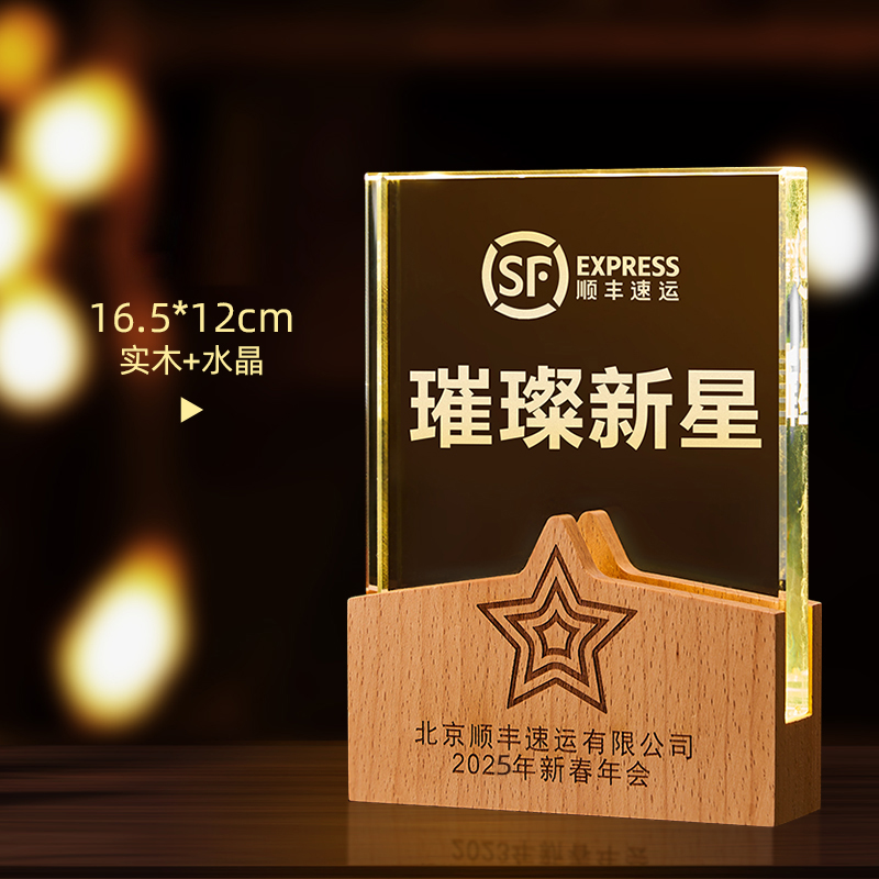 10003 / 水晶奖杯订制发光高档实木创意优秀员工定制公司年会颁奖牌纪念品