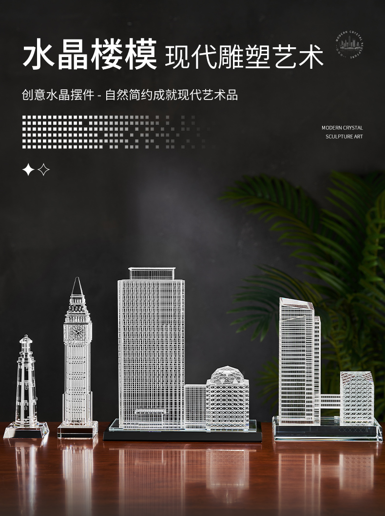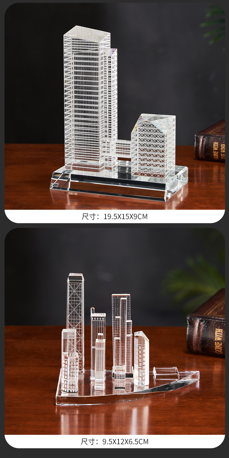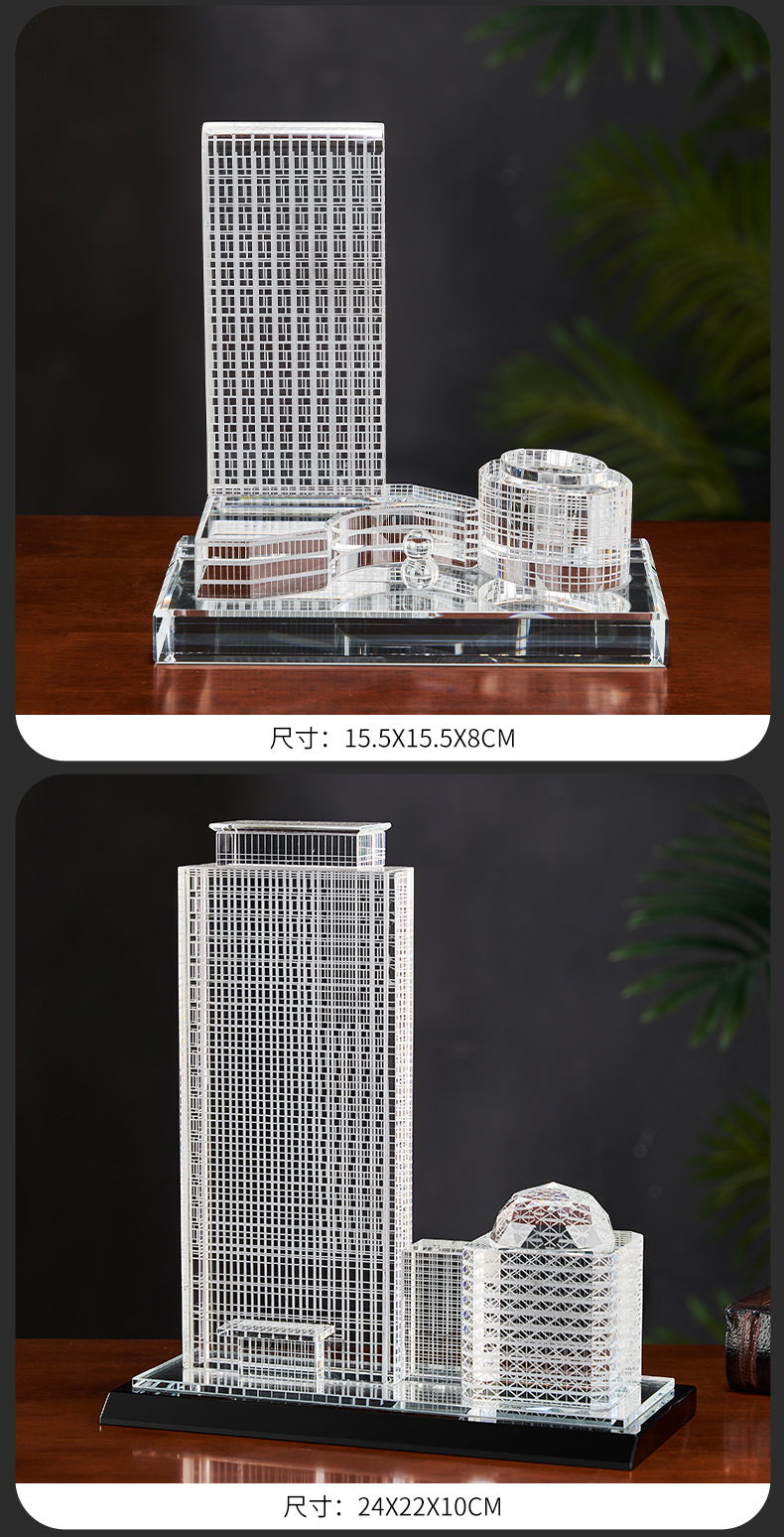 904 / 【水晶楼模】水晶建筑模型礼品企业伴手礼定制塔桌面庆典纪念办公室楼摆件大厦