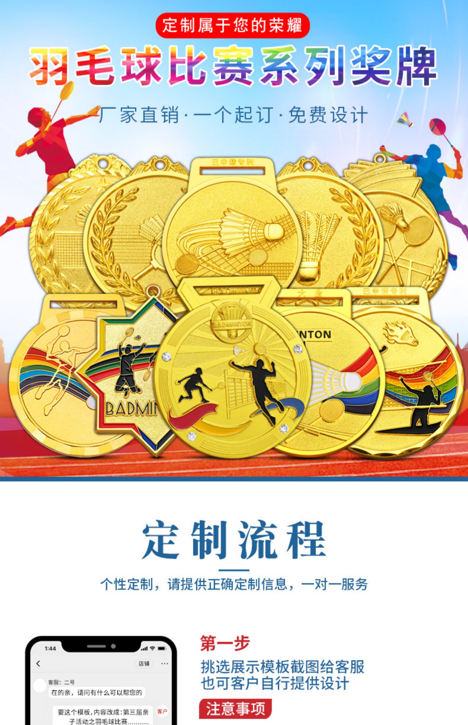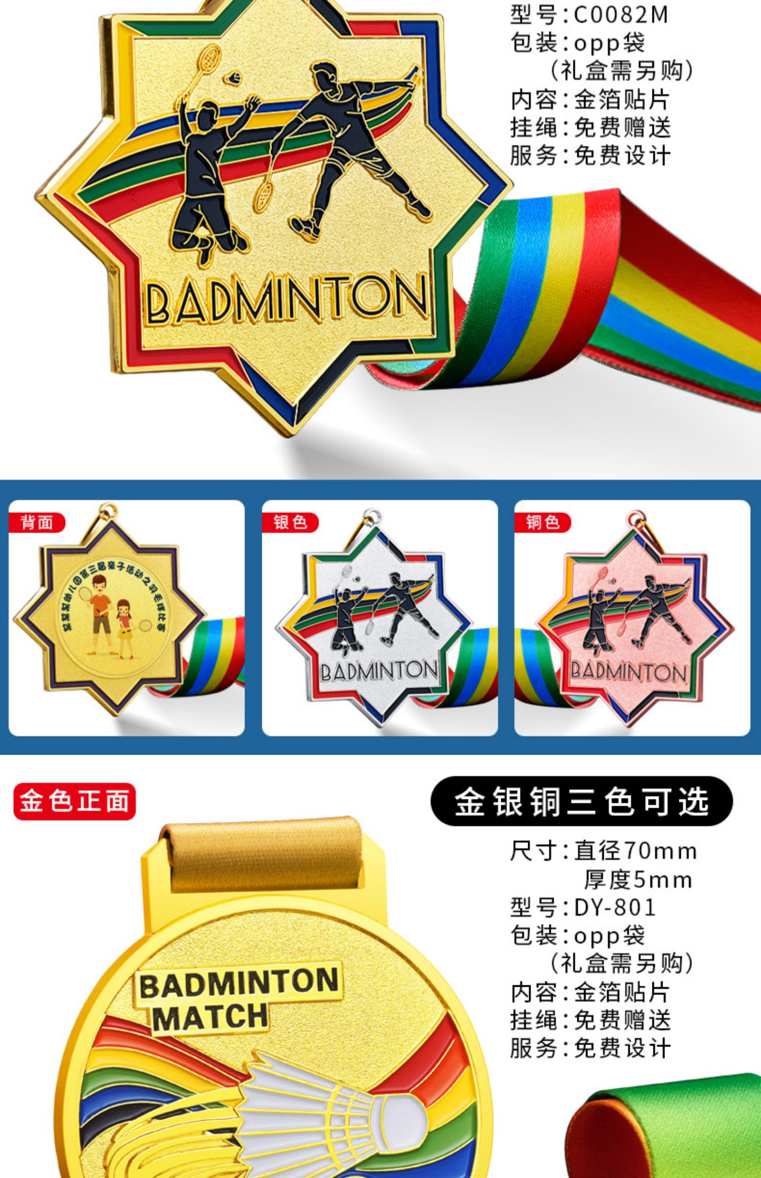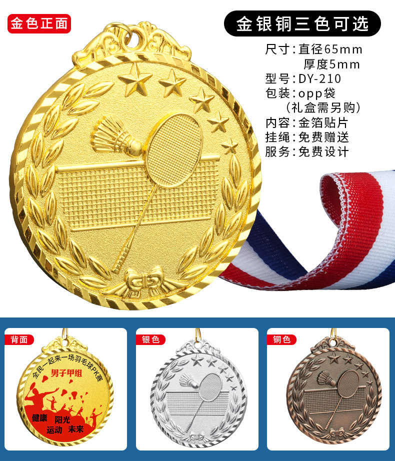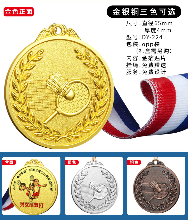 873 / 羽毛球奖牌定制金属金箔金牌运动会冠军颁奖体育赛事荣誉挂牌定做