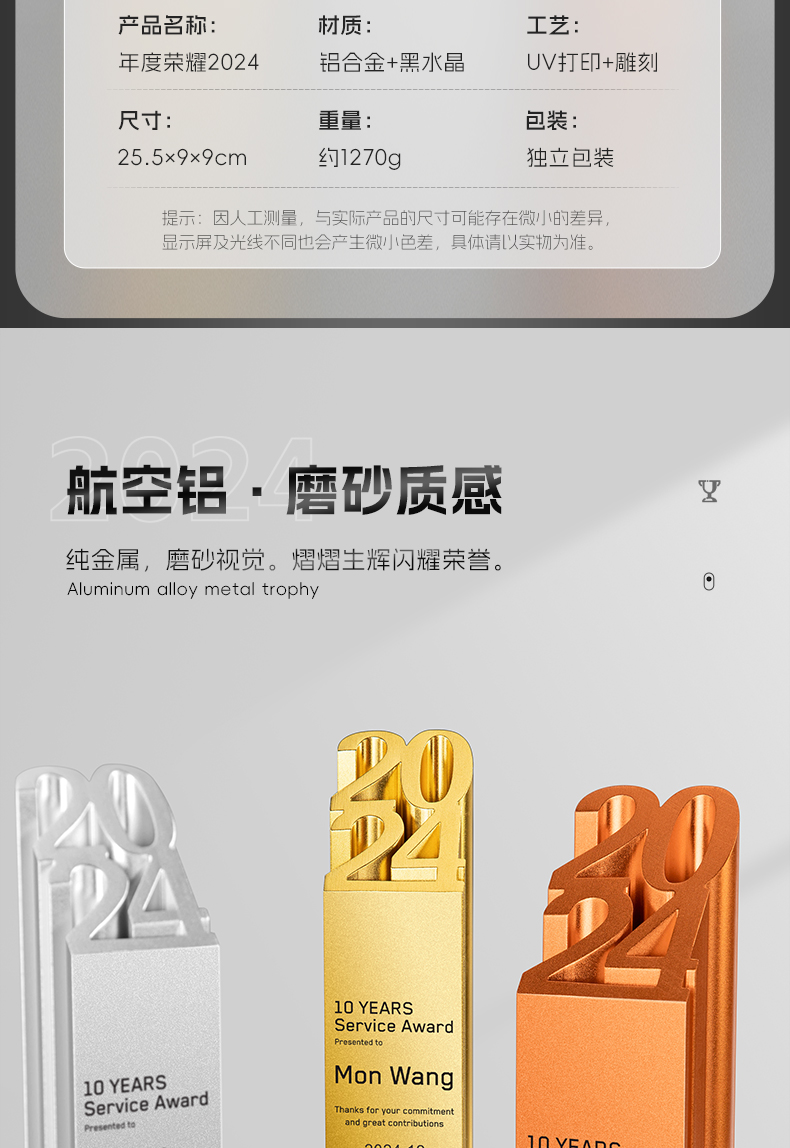 新款年度金属奖杯