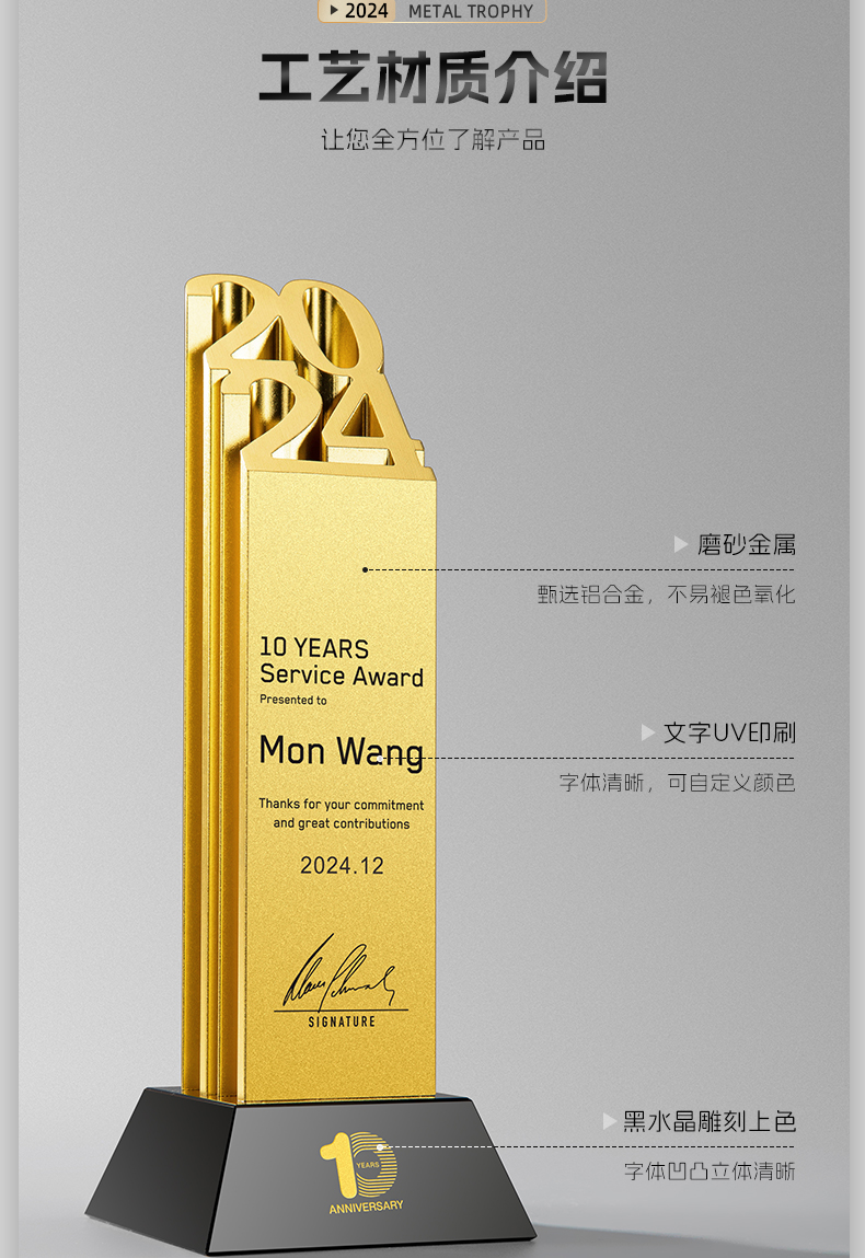 树脂纯金属奖杯金