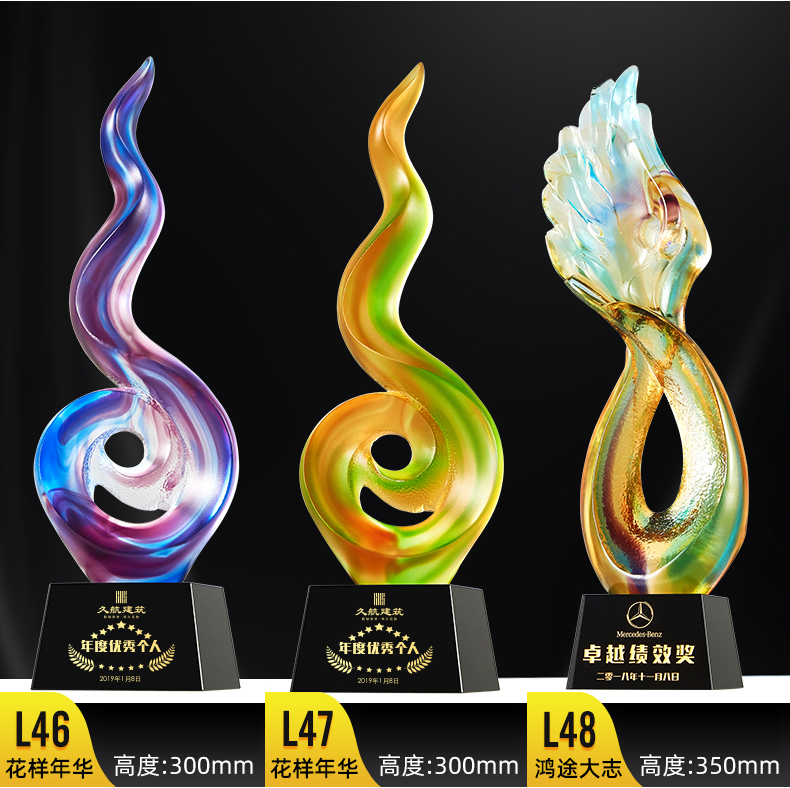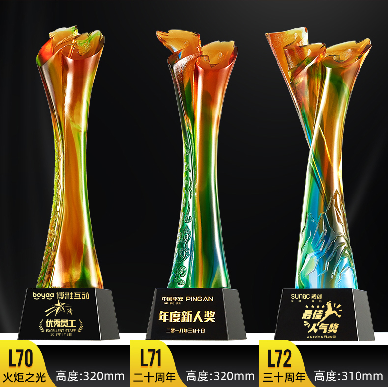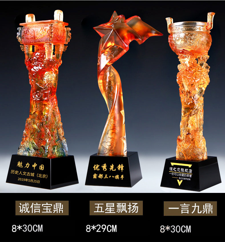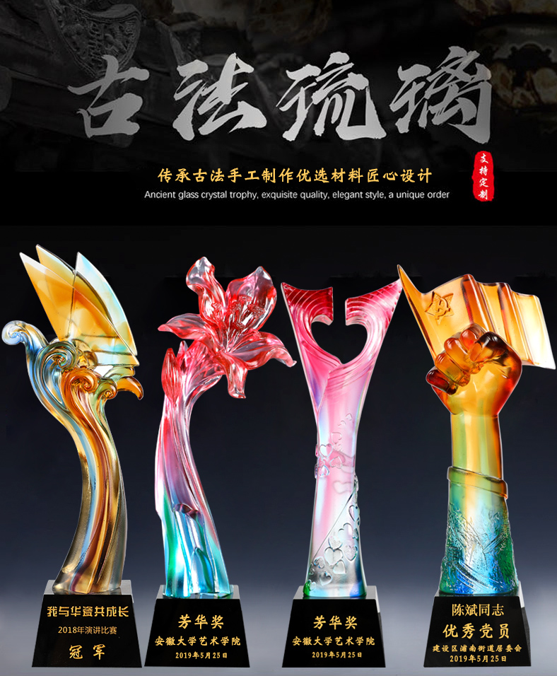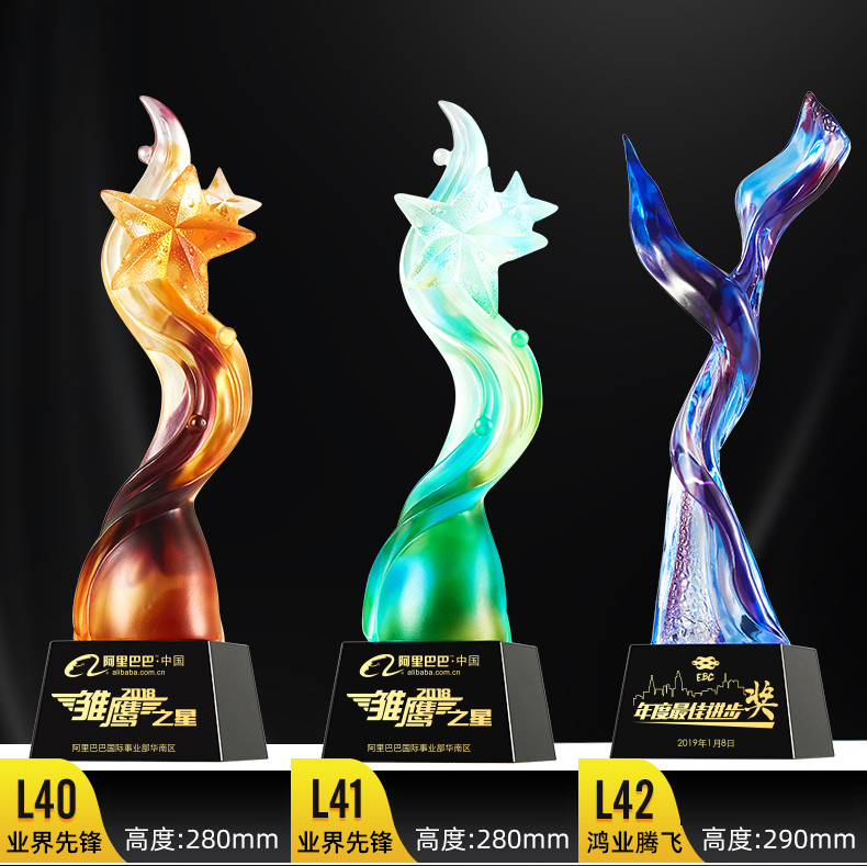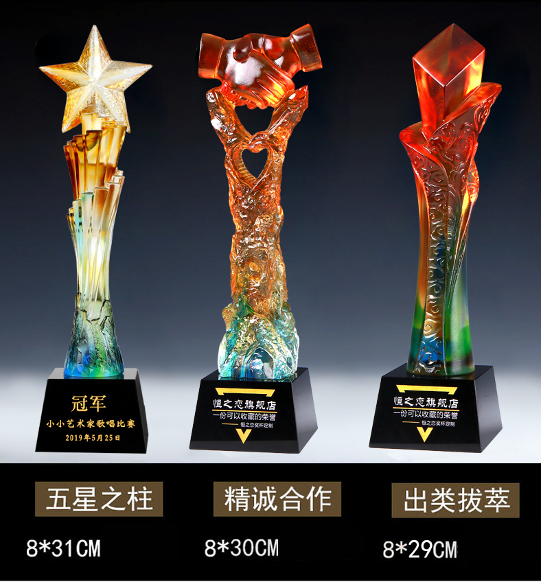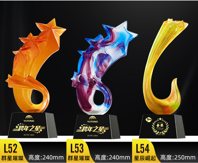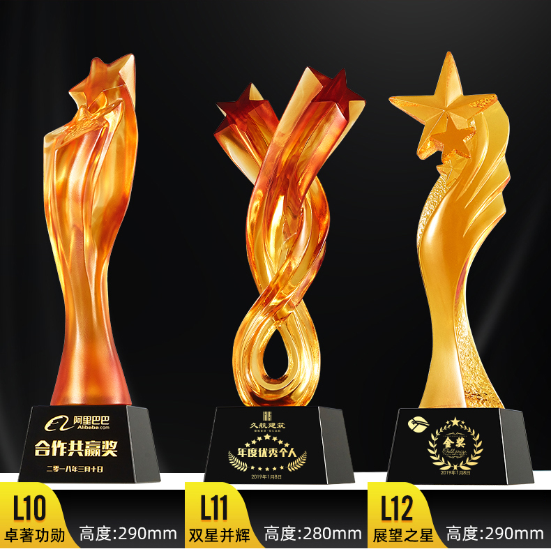 462 / 【古法琉璃奖杯】高档大气创意定制定做水晶五角星优秀员工高级感摆件
