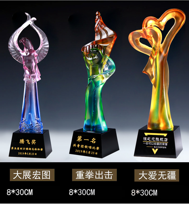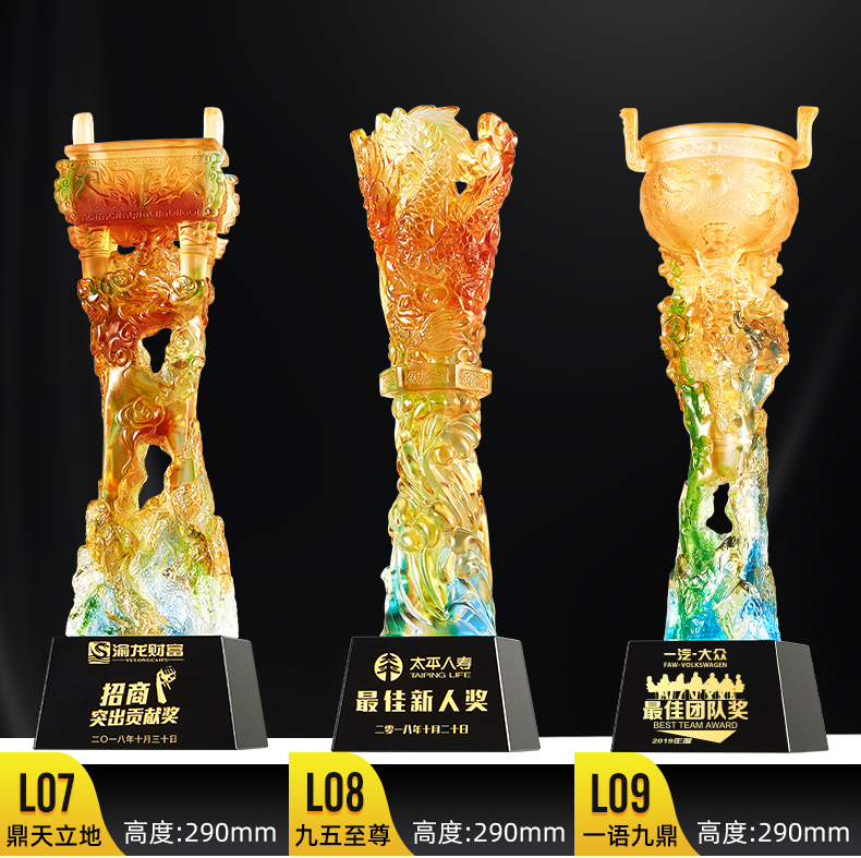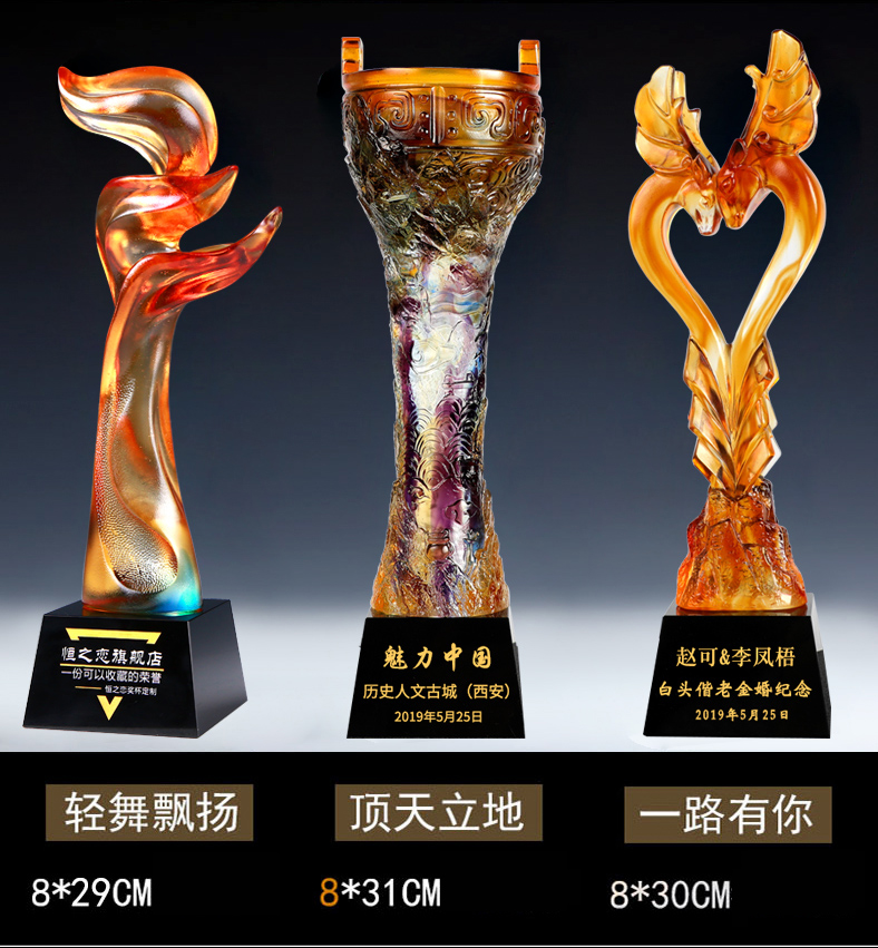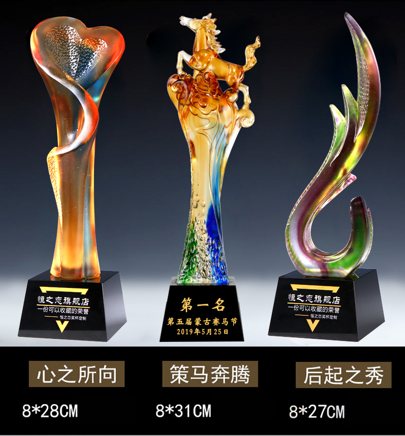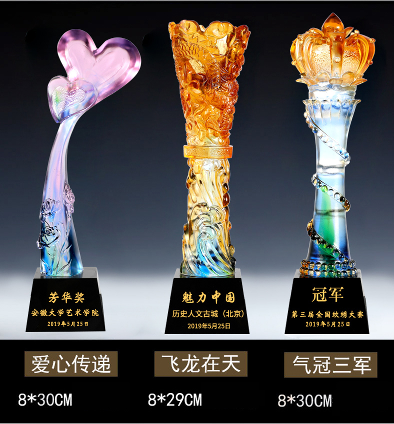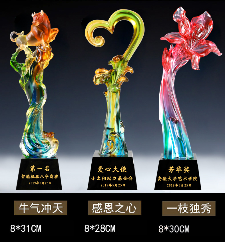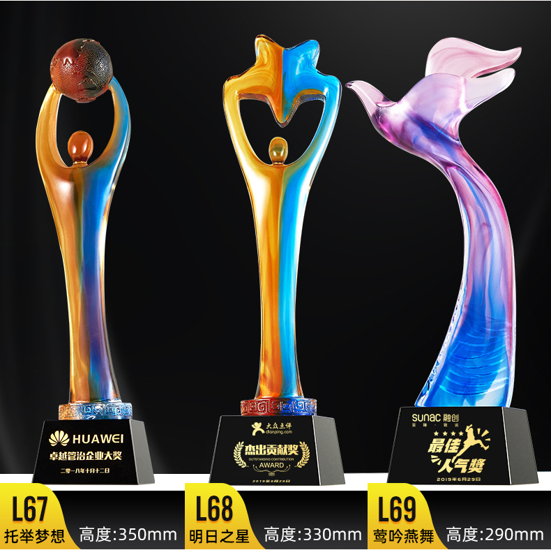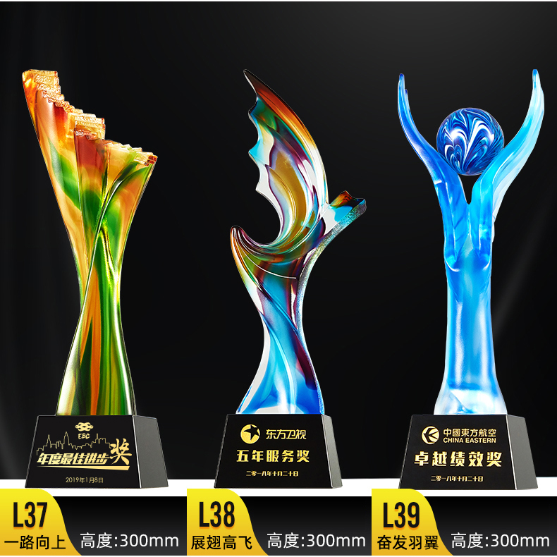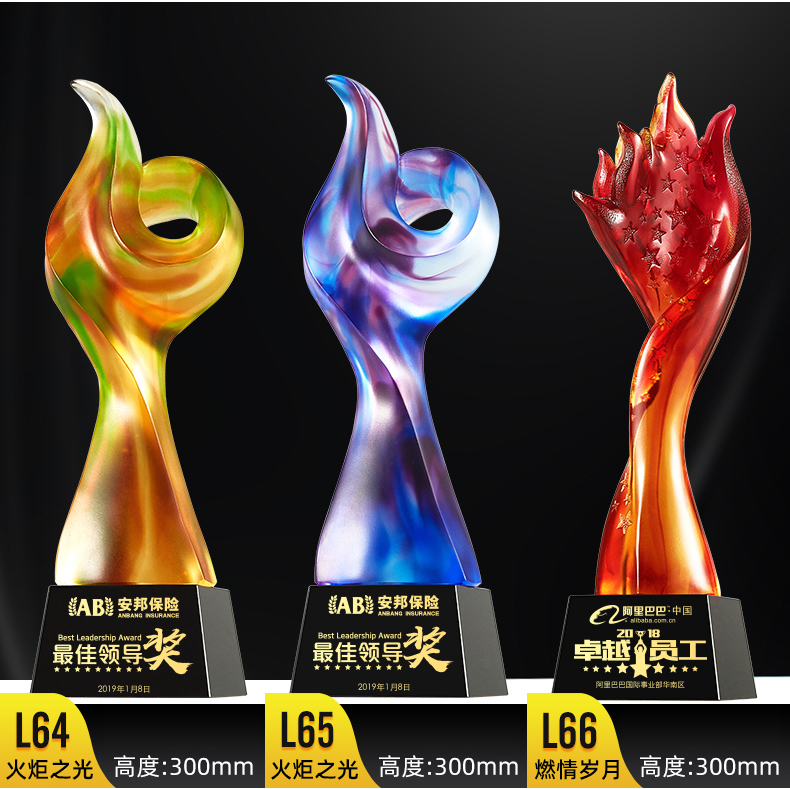 462 / 【古法琉璃奖杯】高档大气创意定制定做水晶五角星优秀员工高级感摆件