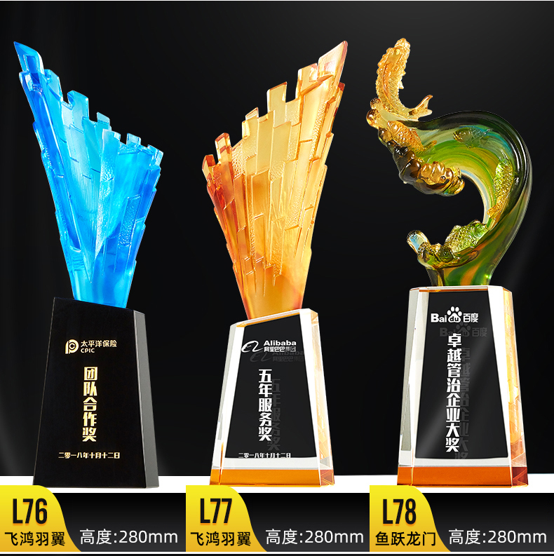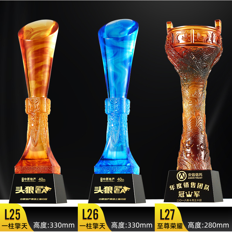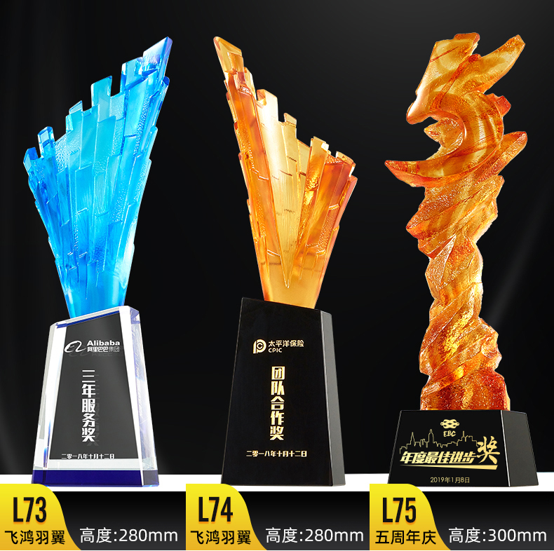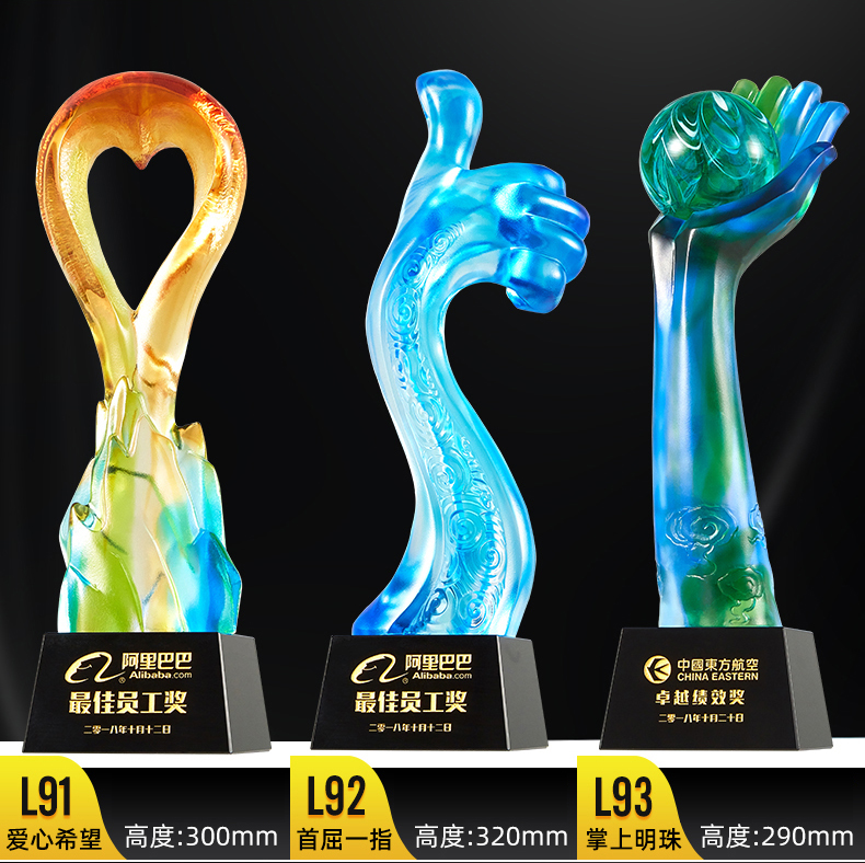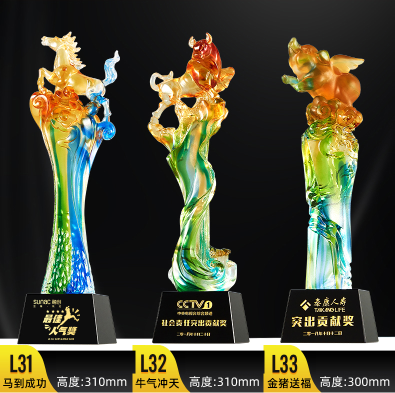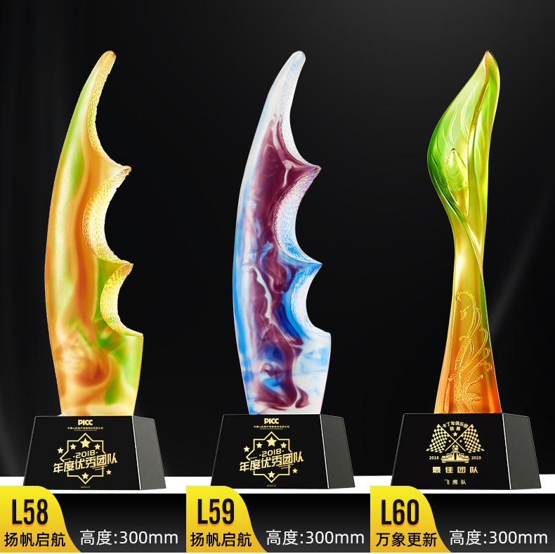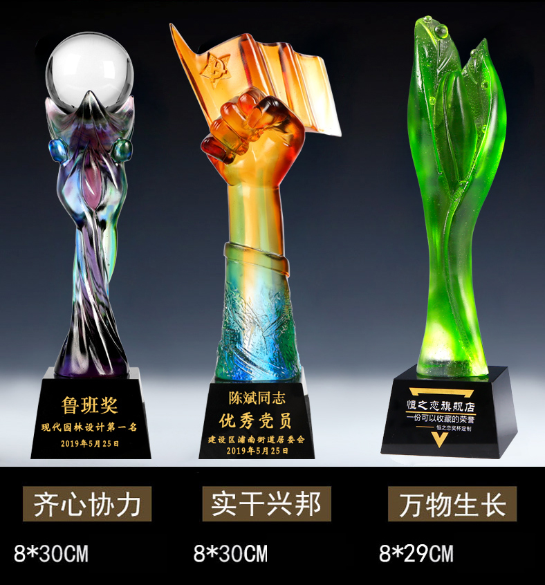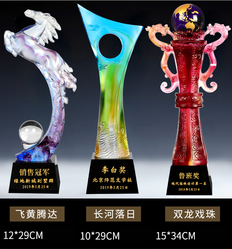 462 / 【古法琉璃奖杯】高档大气创意定制定做水晶五角星优秀员工高级感摆件